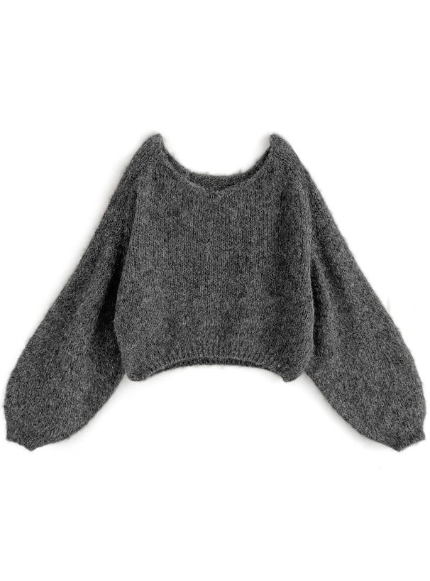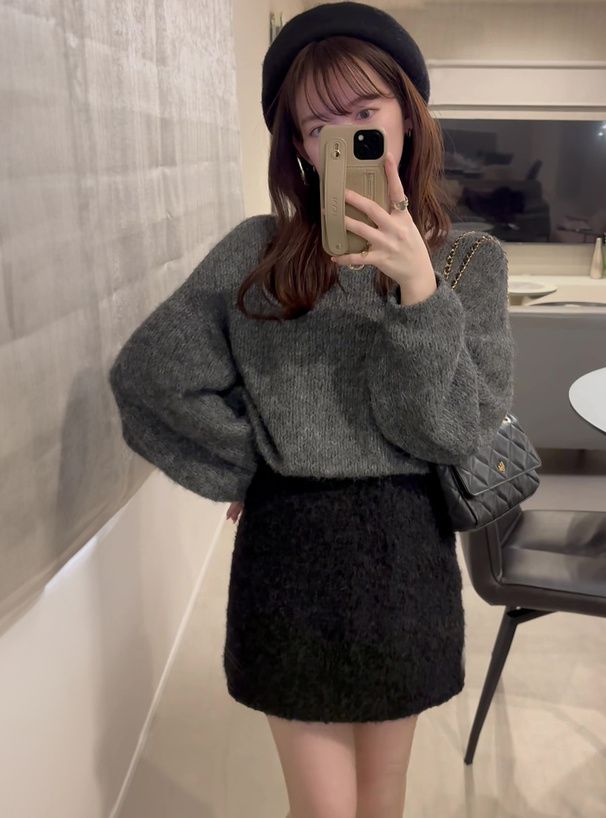 日本 GRL - 前後2way馬海毛觸感短版針織上衣-深灰 (F)