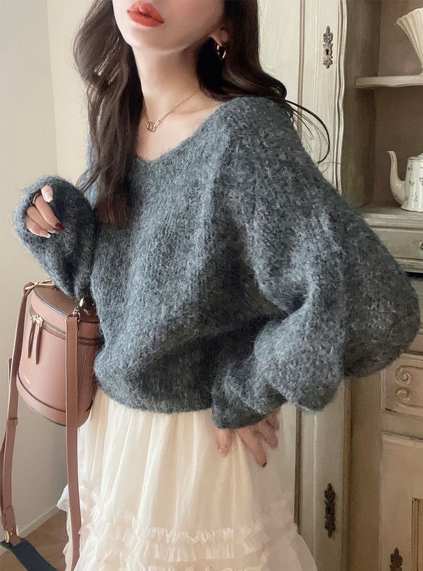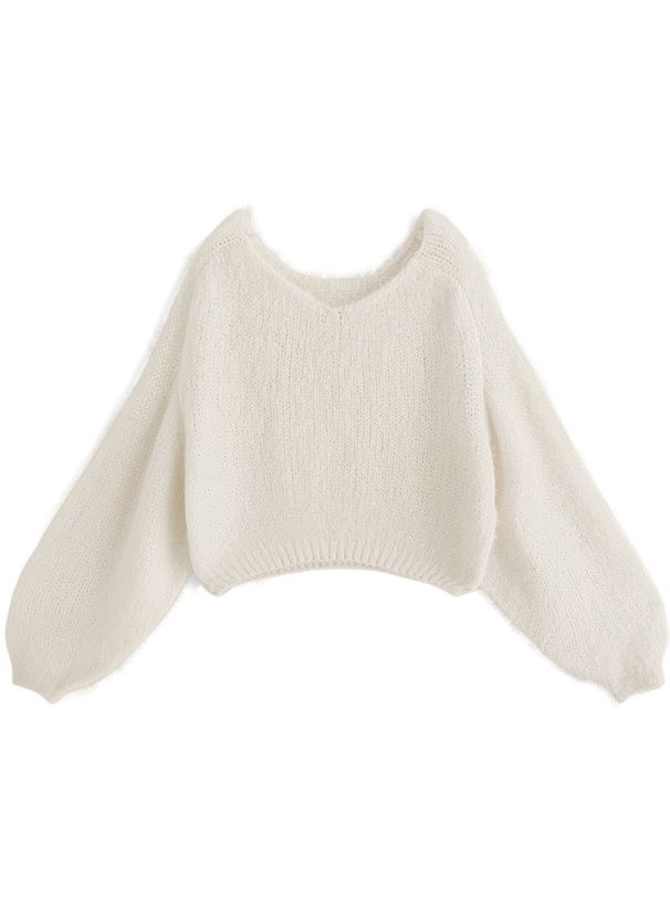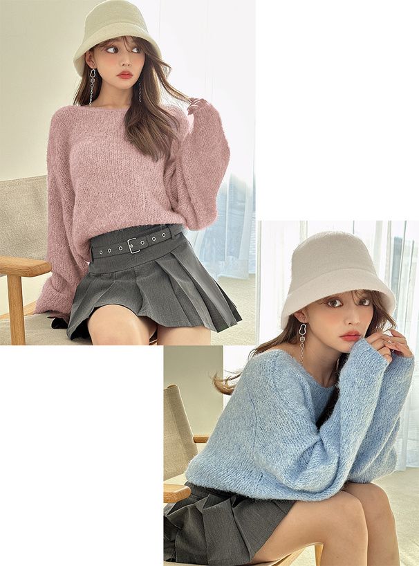 • 品名:前後2way馬海毛觸感短版針織上衣