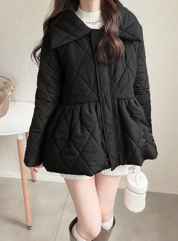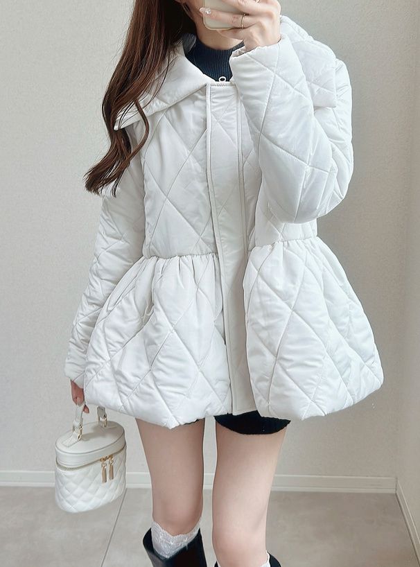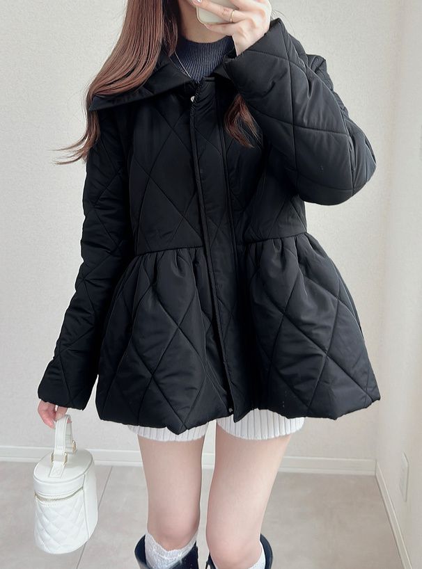 • 品名:大翻領絎縫甜美裙擺修身外套