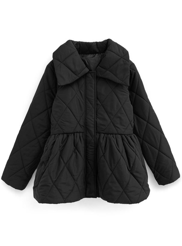 日本 GRL - 大翻領絎縫甜美裙擺修身外套-黑 (F)