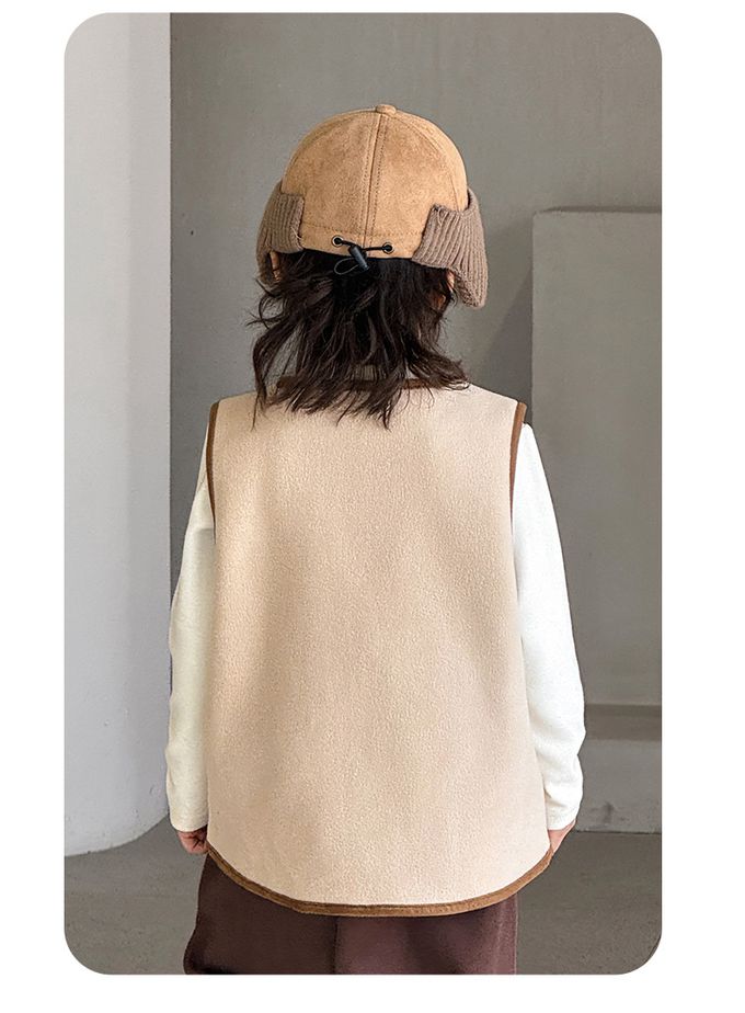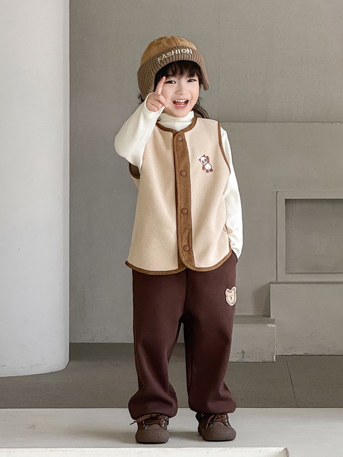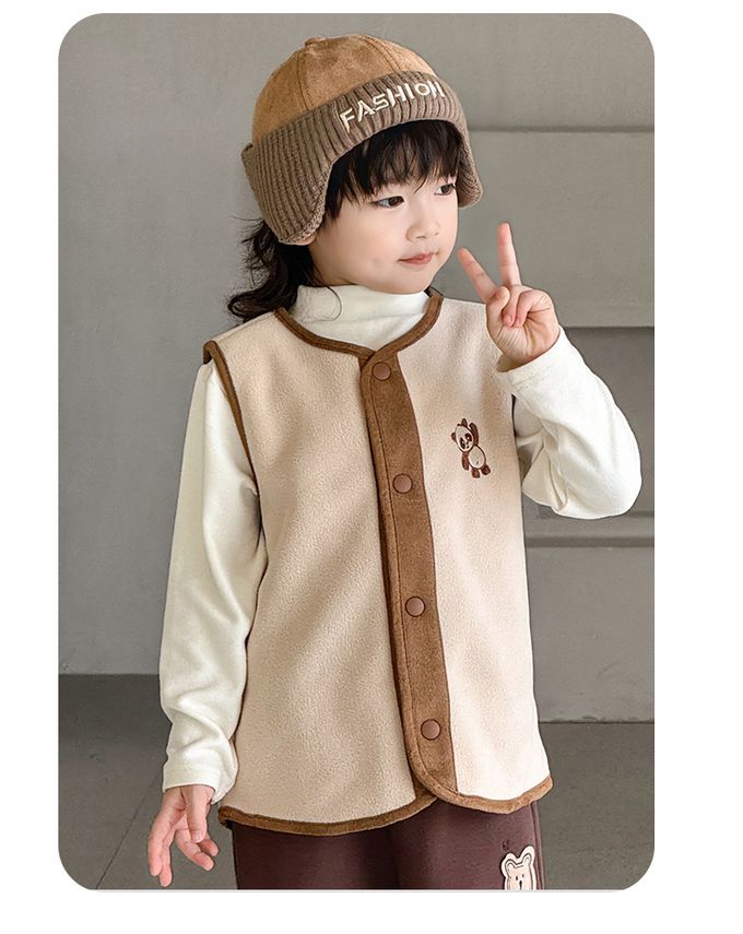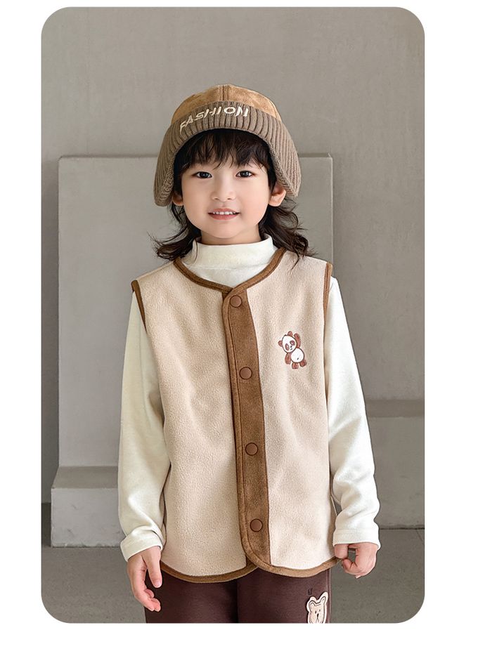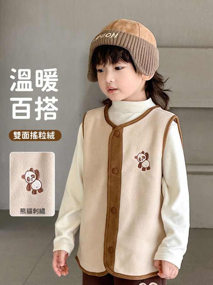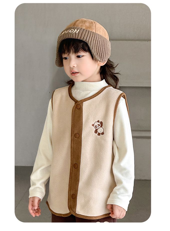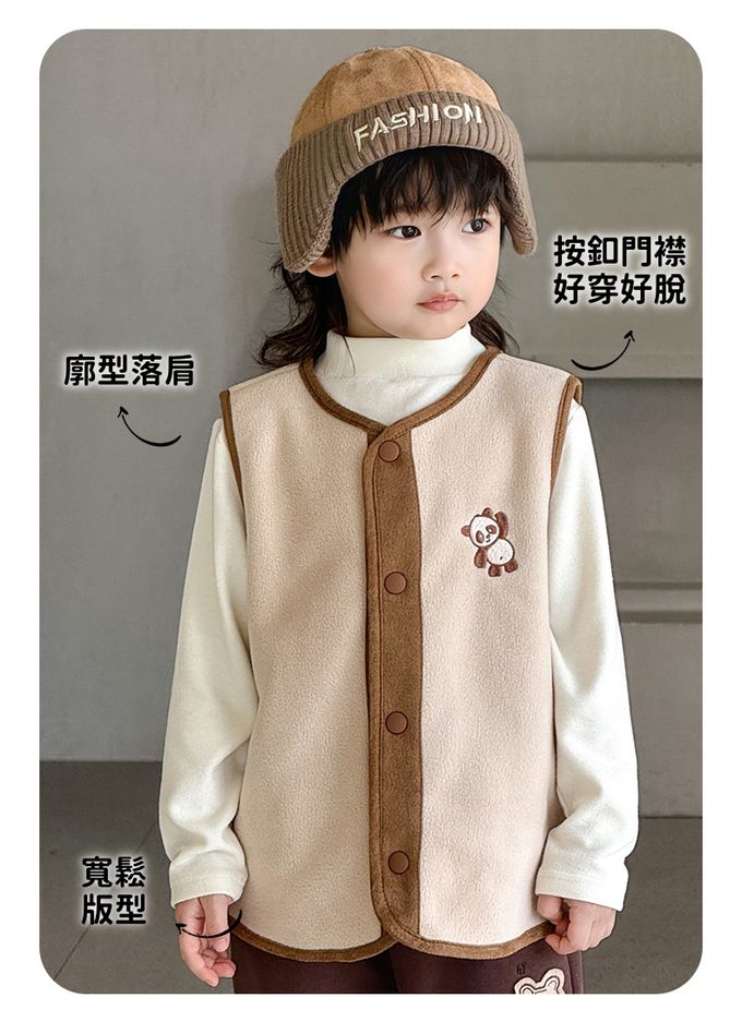 搖粒絨保暖兒童背心-招手熊貓-米杏棕