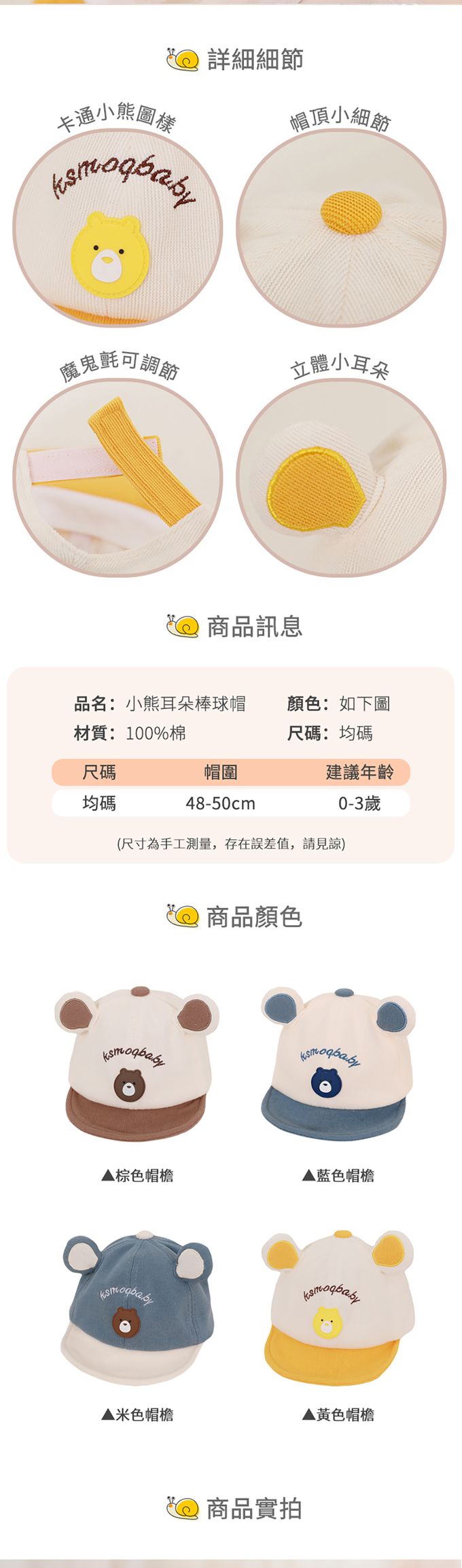 【商品名稱】刺繡小熊耳朵棒球帽