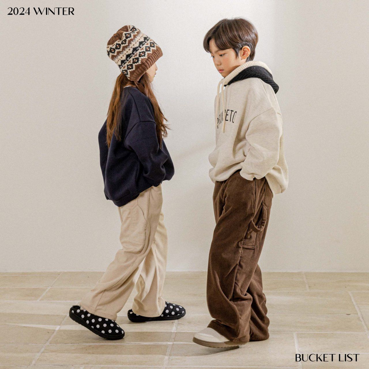 韓國 BUCKET LIST - 鬆緊腰燈芯絨寬鬆落地褲