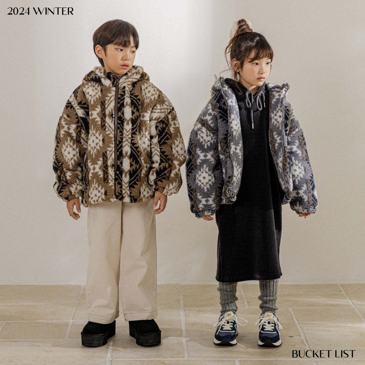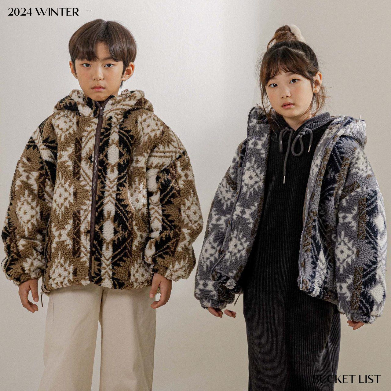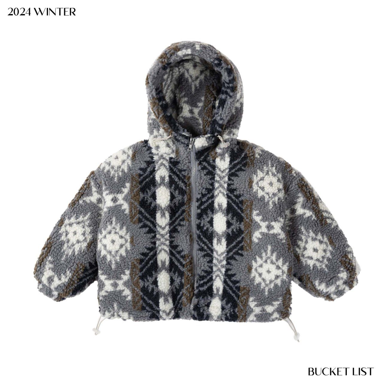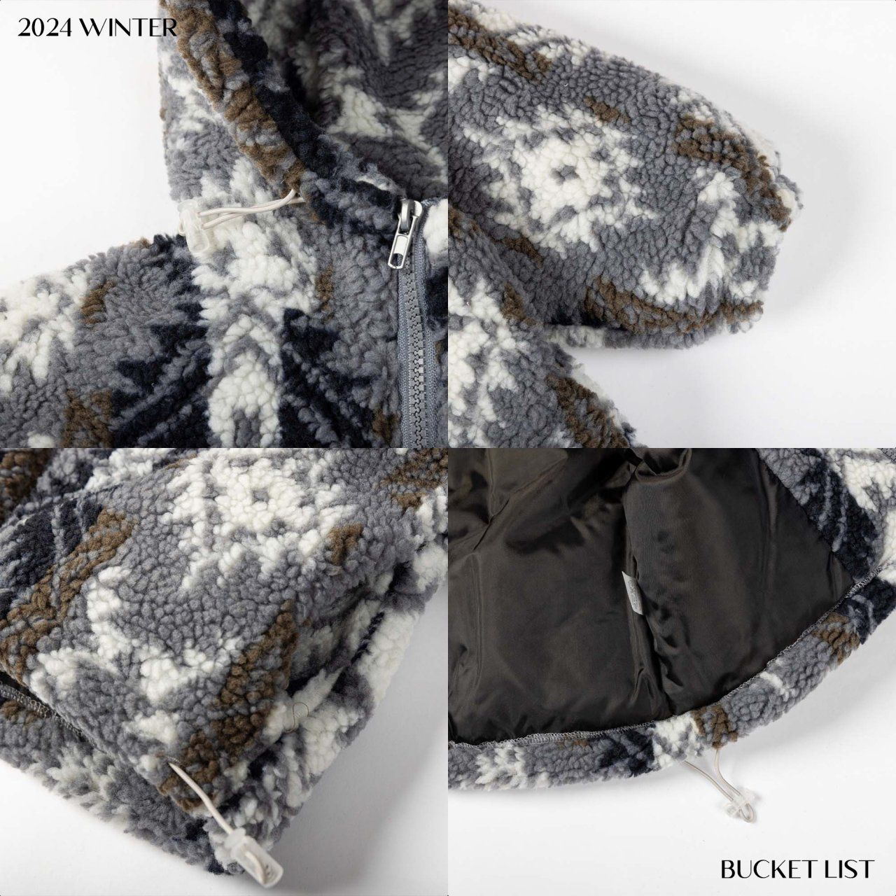 韓國 BUCKET LIST - 雪花羊羔絨連帽拉鍊外套