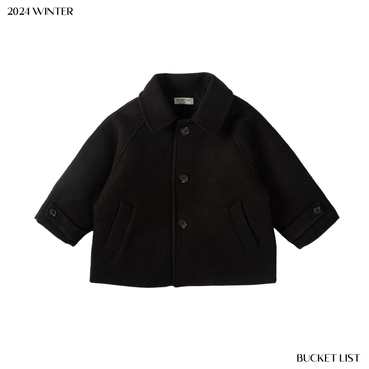 韓國 BUCKET LIST - 韓系中長版內填充翻領大衣外套-黑