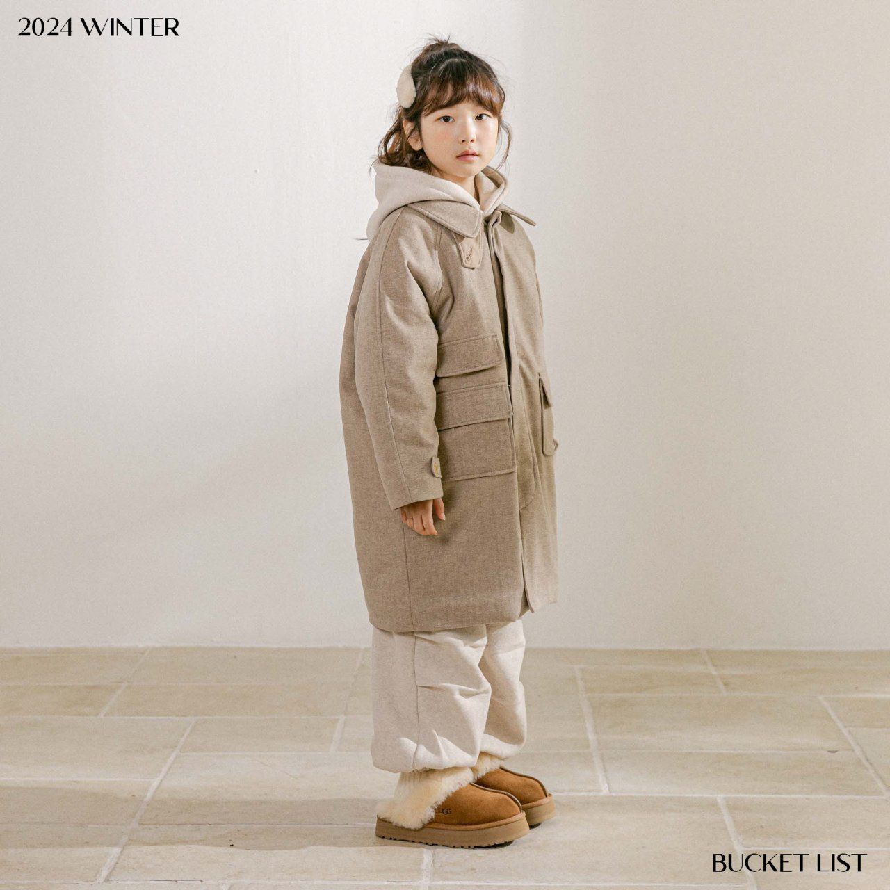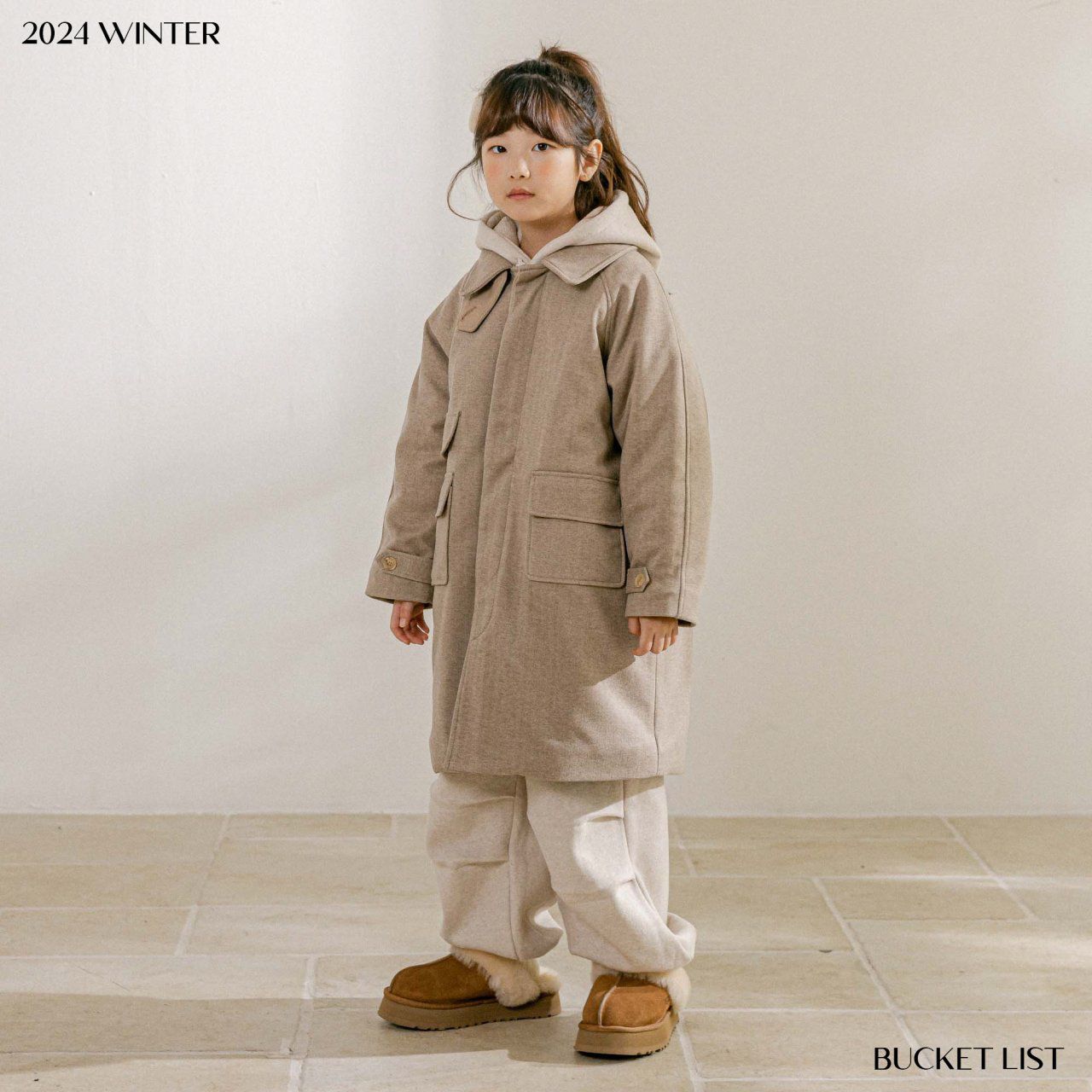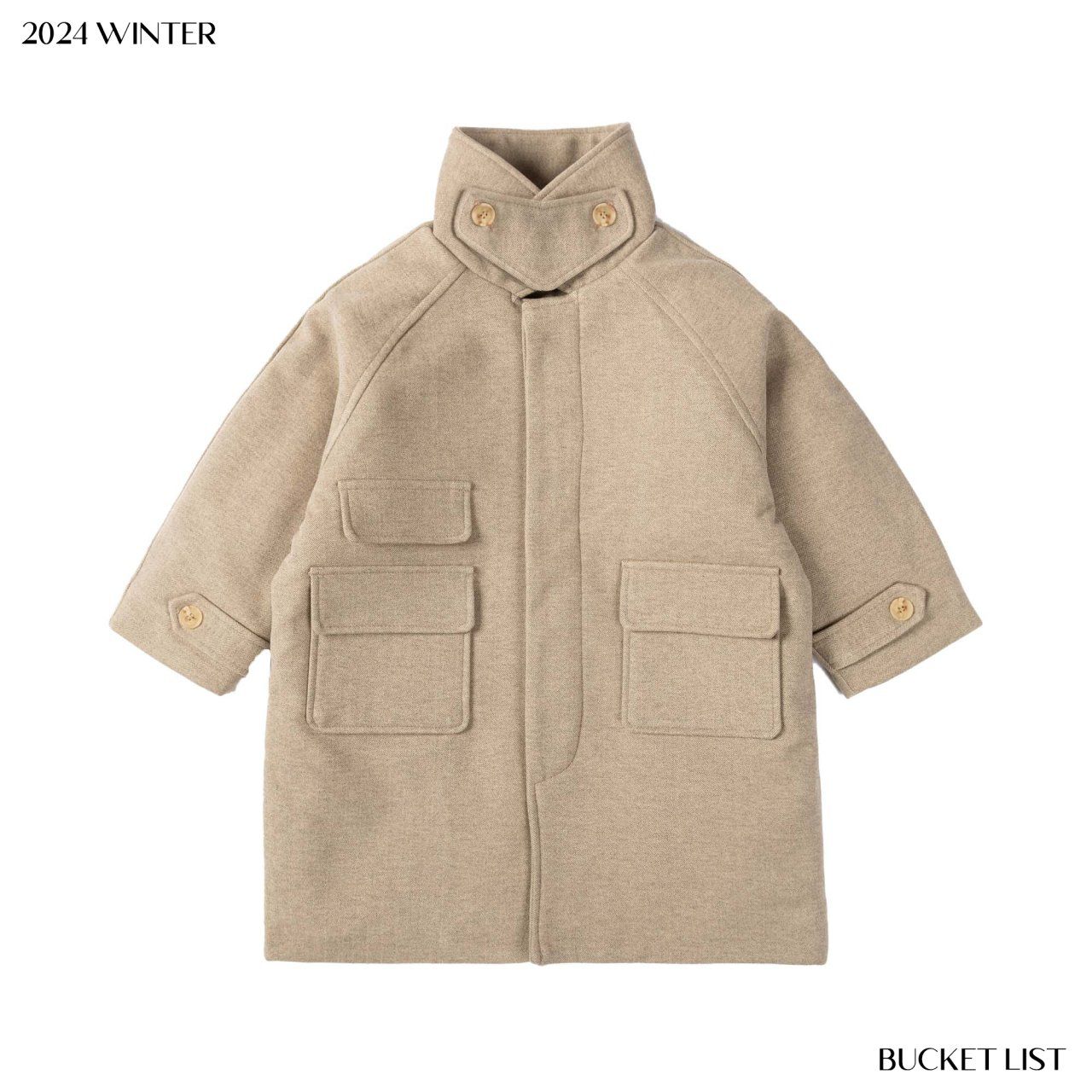 韓國 BUCKET LIST - 冬日毛呢內填充中長版大衣外套-淺摩卡