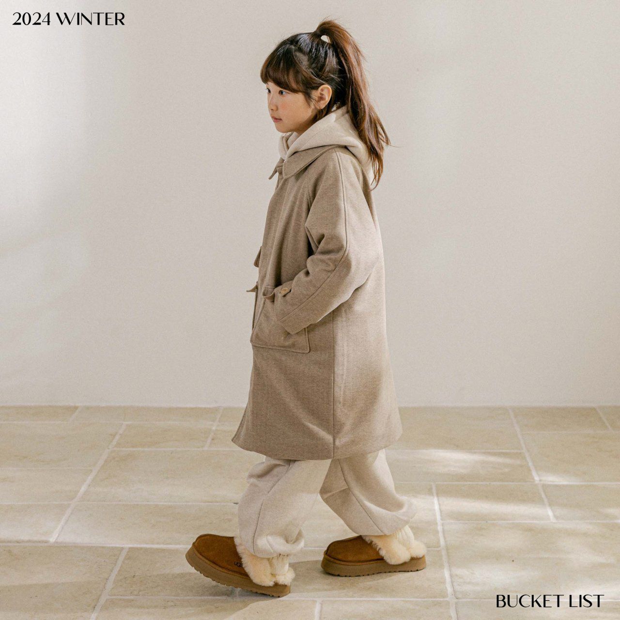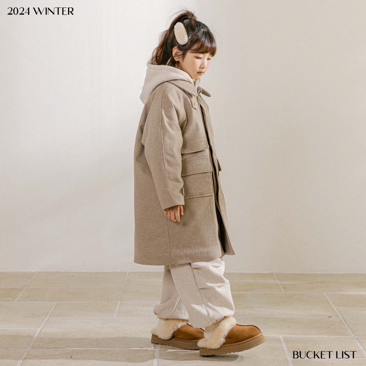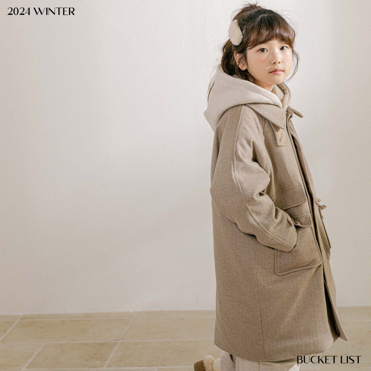 韓國 BUCKET LIST - 冬日毛呢內填充中長版大衣外套-淺摩卡