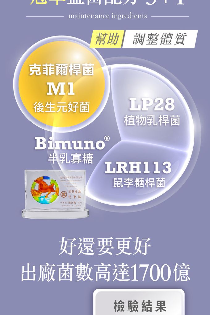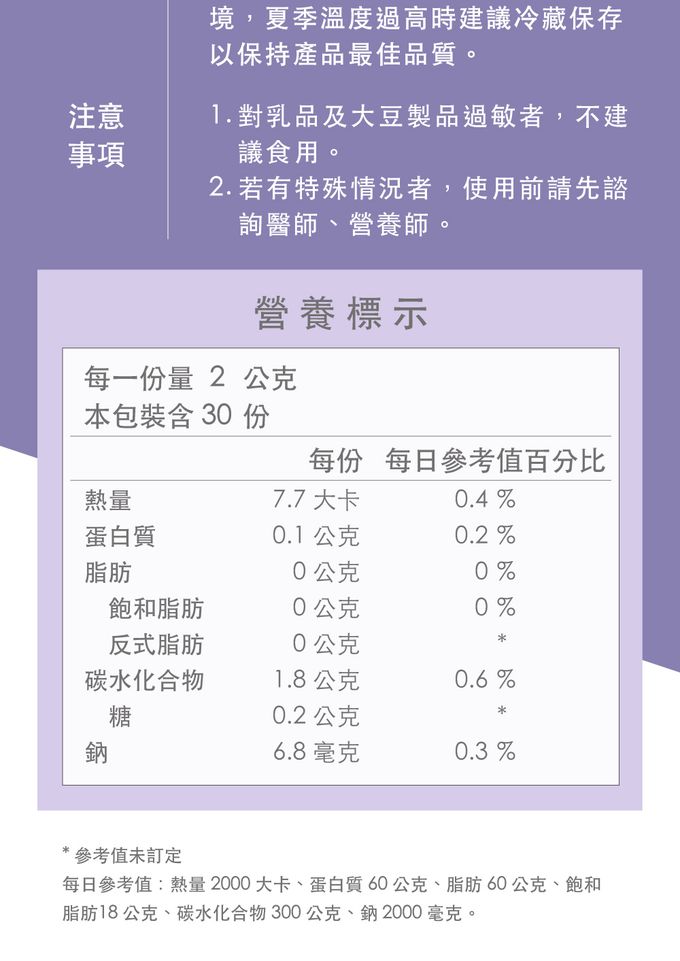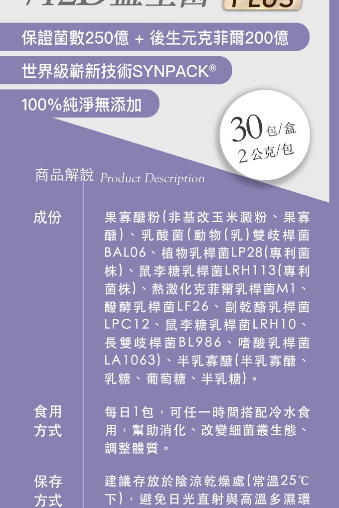 成分:果寡醣粉(非基改玉米澱粉、果寡醣)、乳酸菌(動物(乳)雙歧桿菌BAL06、植物乳
