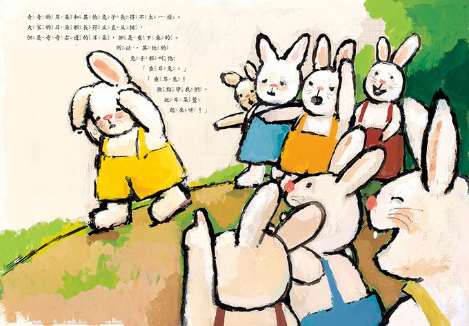 卻因為右邊下垂的耳朵被其他兔子嘲笑,並稱他為「垂耳兔」。