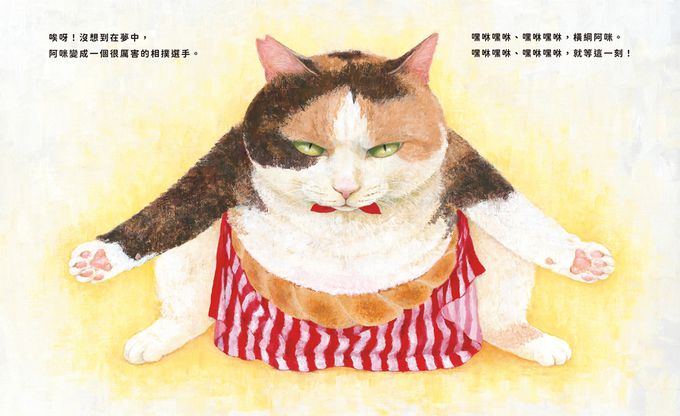 在夢中,阿咪竟然變成了正在比賽的相撲選手
