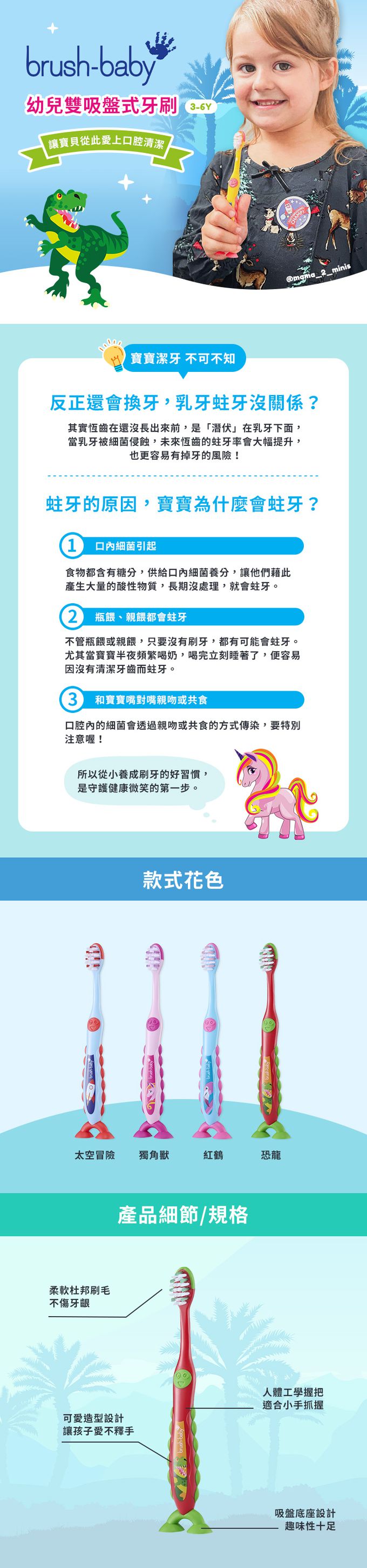 Brush Baby - 幼兒雙吸盤式牙刷 兒童吸盤式牙刷 兒童牙刷-恐龍-(3-6Y) 2入