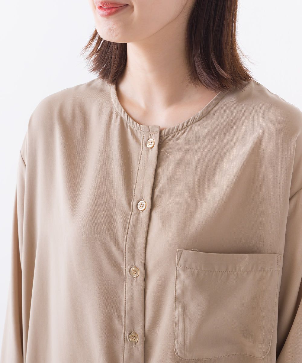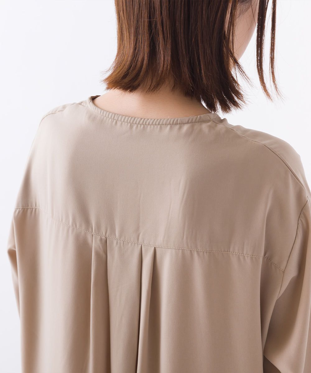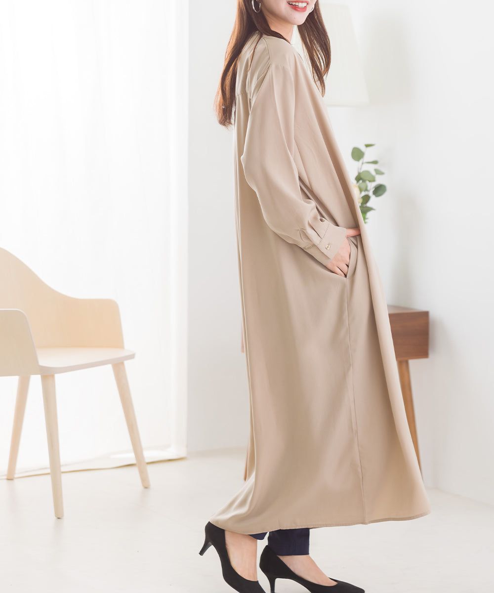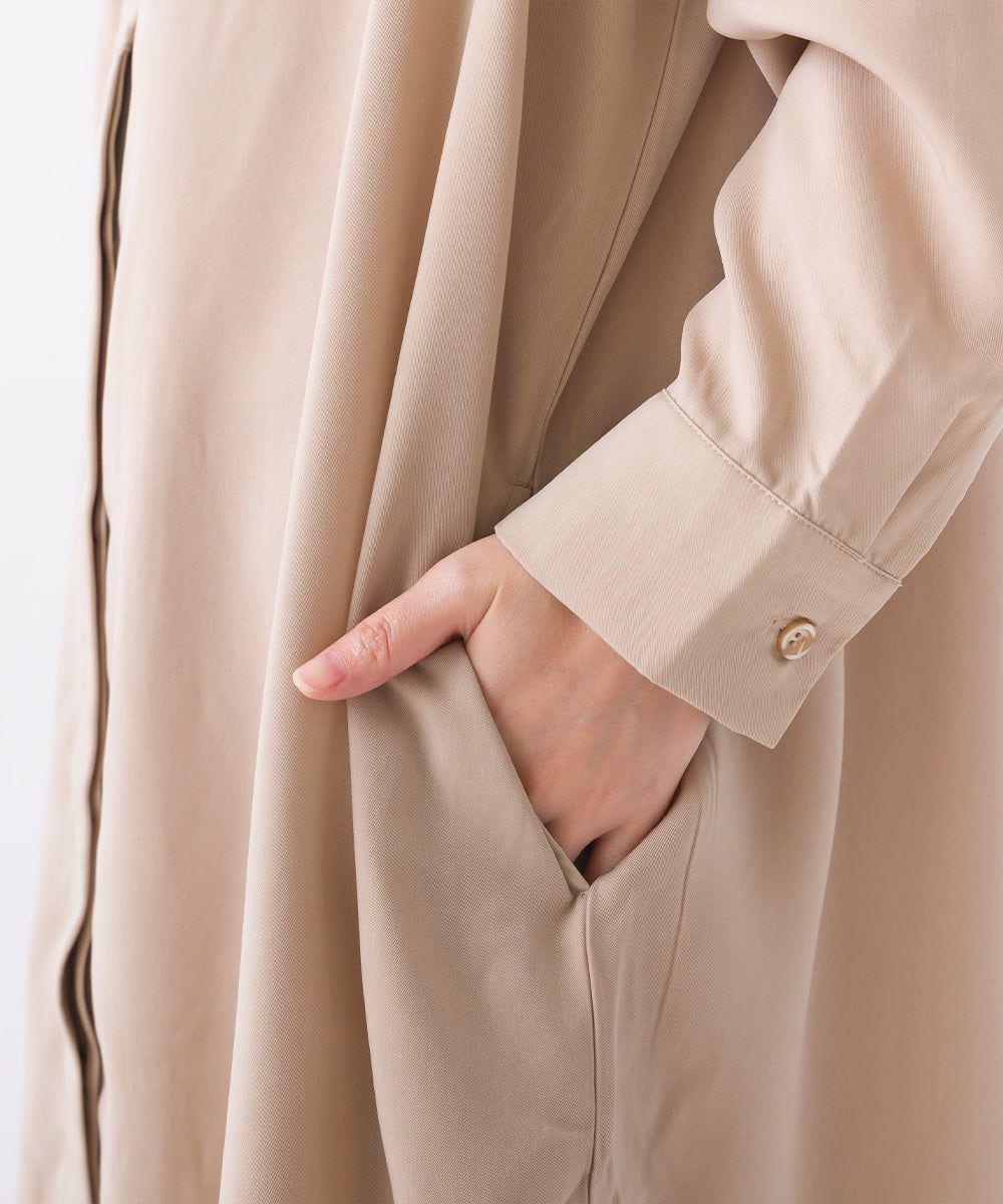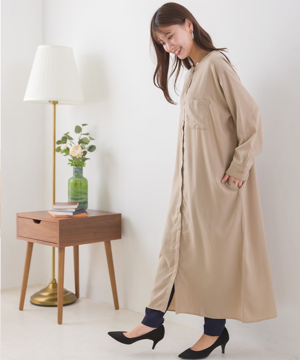 日本 OMNES - 桃皮絨柔滑休閒後打褶長袖洋裝-藕粉