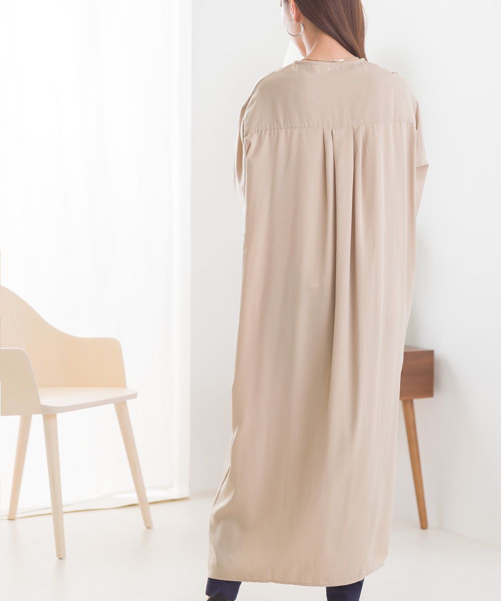 • 品名:桃皮絨柔滑休閒後打褶長袖洋裝