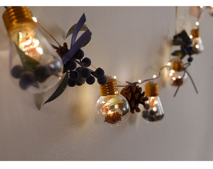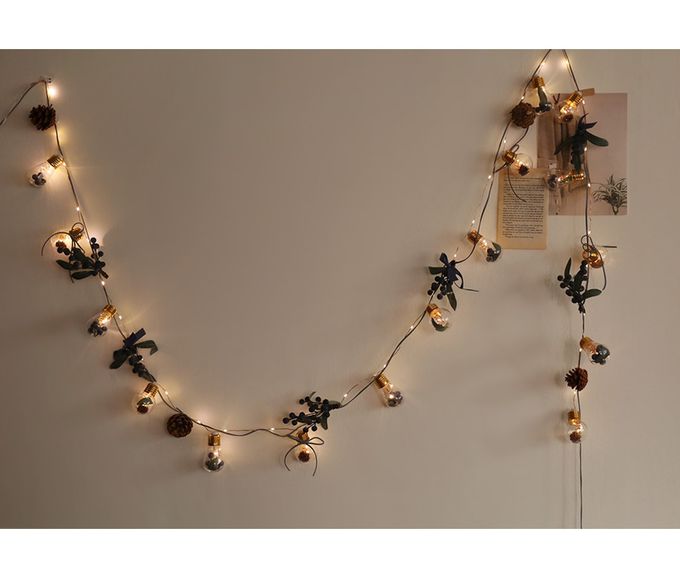韓國 THE FLOWERMARKET - 質感聖誕燈泡串組(附裝飾材料)-冬日果實 (M[燈泡長約1.8M])
