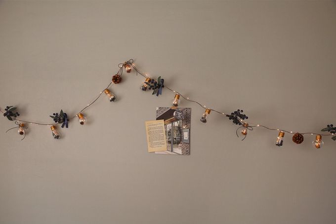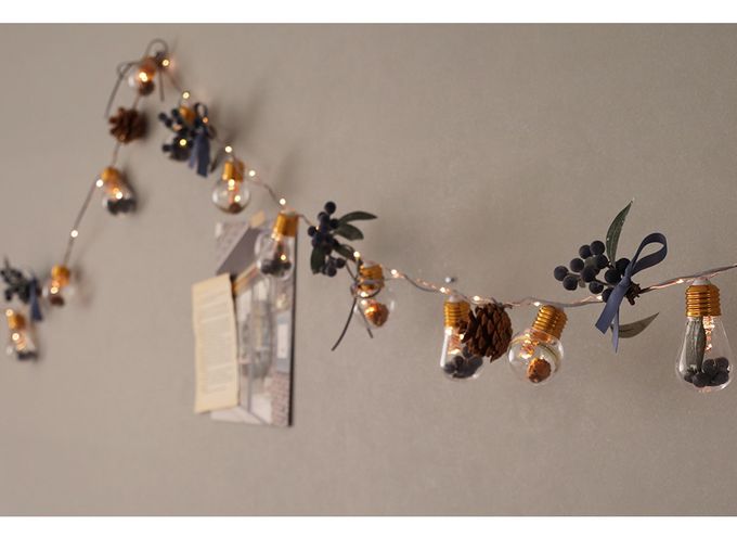 藍莓、松果、緞帶、麂皮繩⋯⋯加上可DIY組裝的聖誕燈泡組,帶給空間自然清新的溫馨感❤