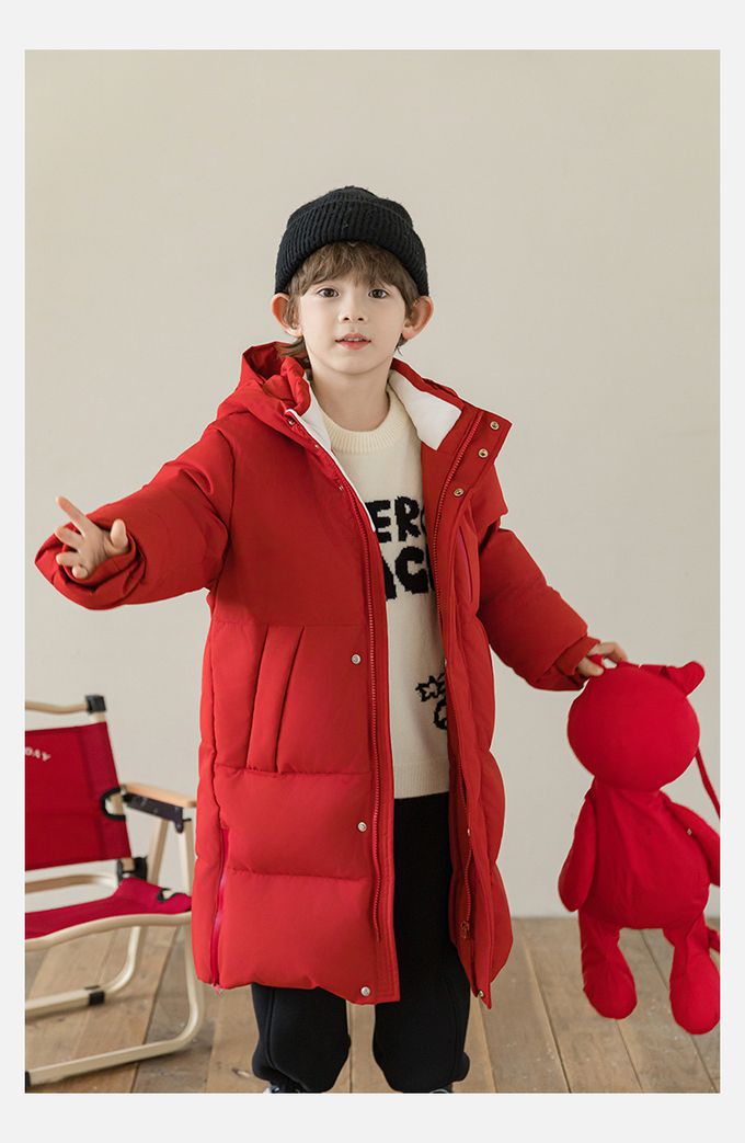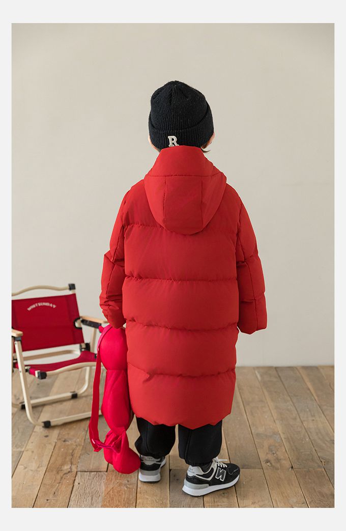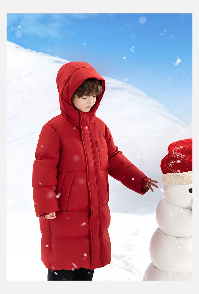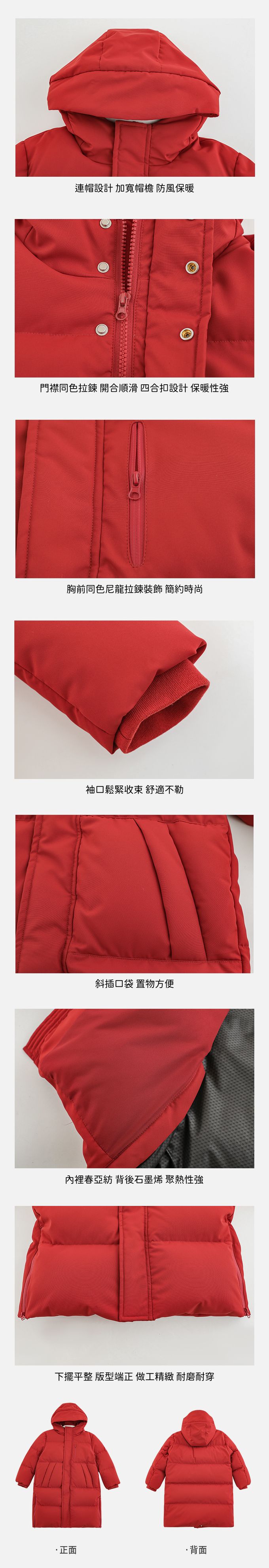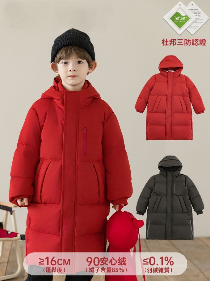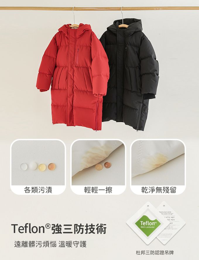 杜邦三防(防水防油防污)90%羽絨外套-連帽長版-紅色