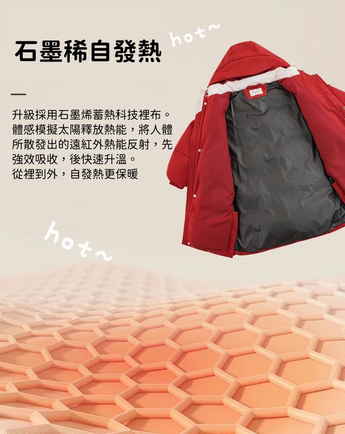 石墨烯裡襯自然蓄熱,羅紋袖口不進風