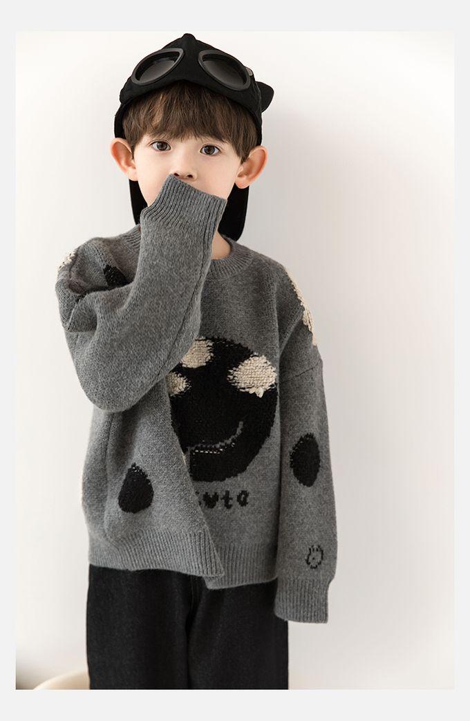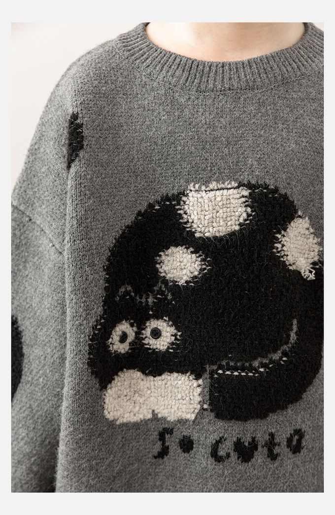 TONGMO - 抗起球圓領長袖針織上衣/毛衣-可愛動物-米咖條紋