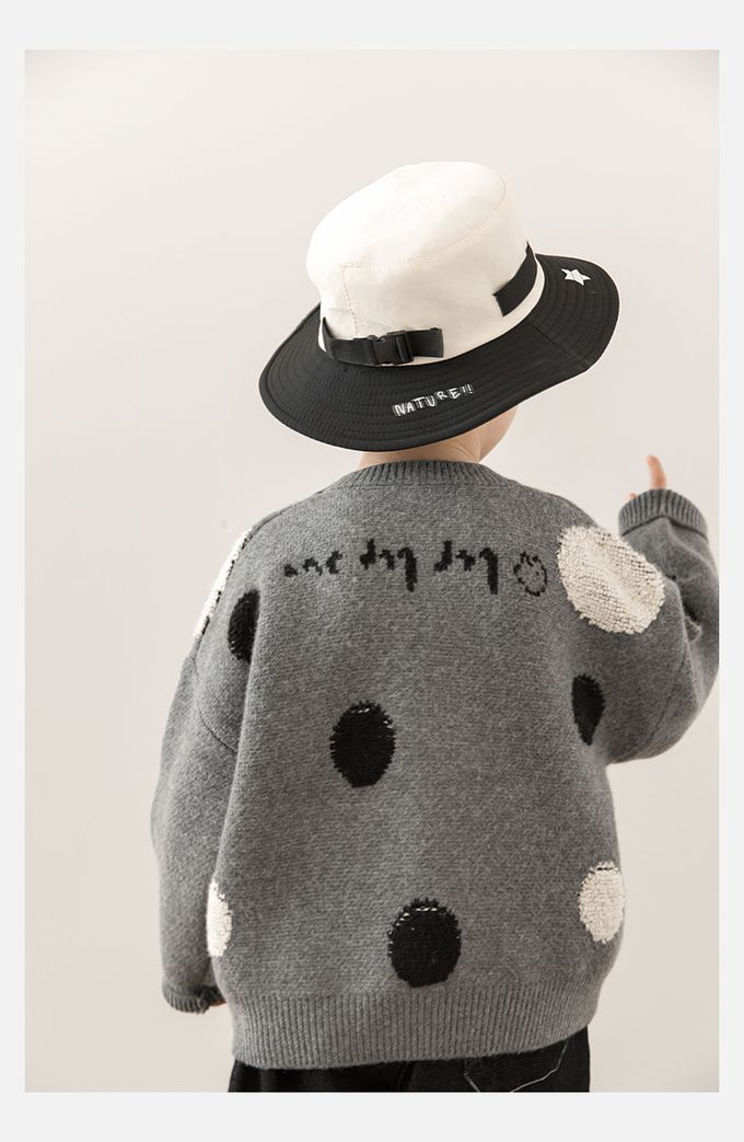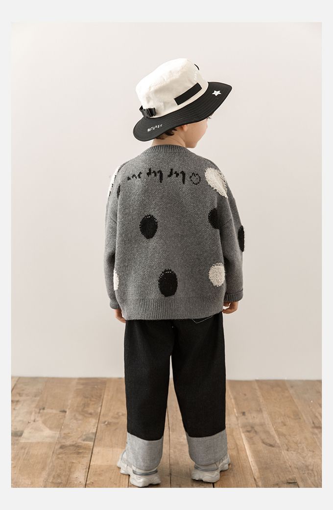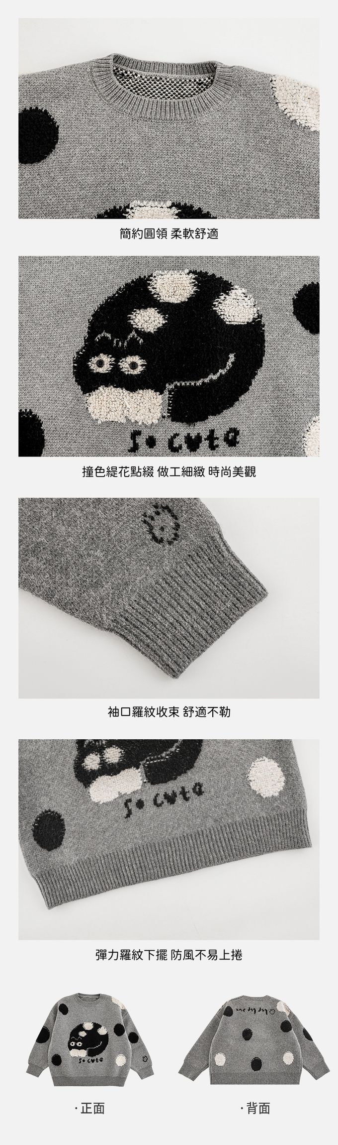 TONGMO - 抗起球圓領長袖針織上衣/毛衣-點點貓咪-綠色