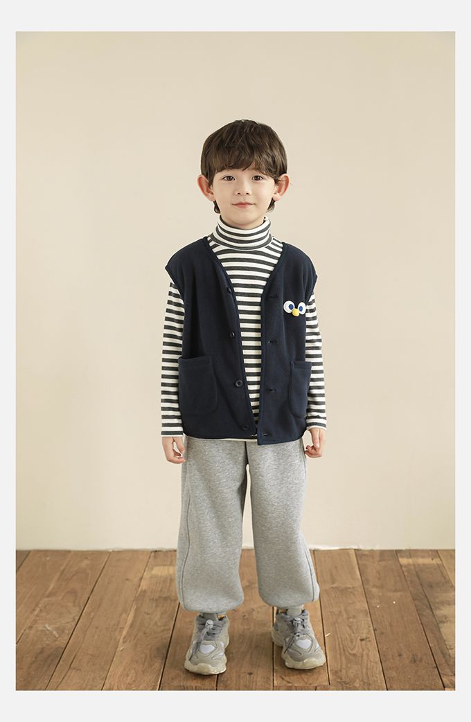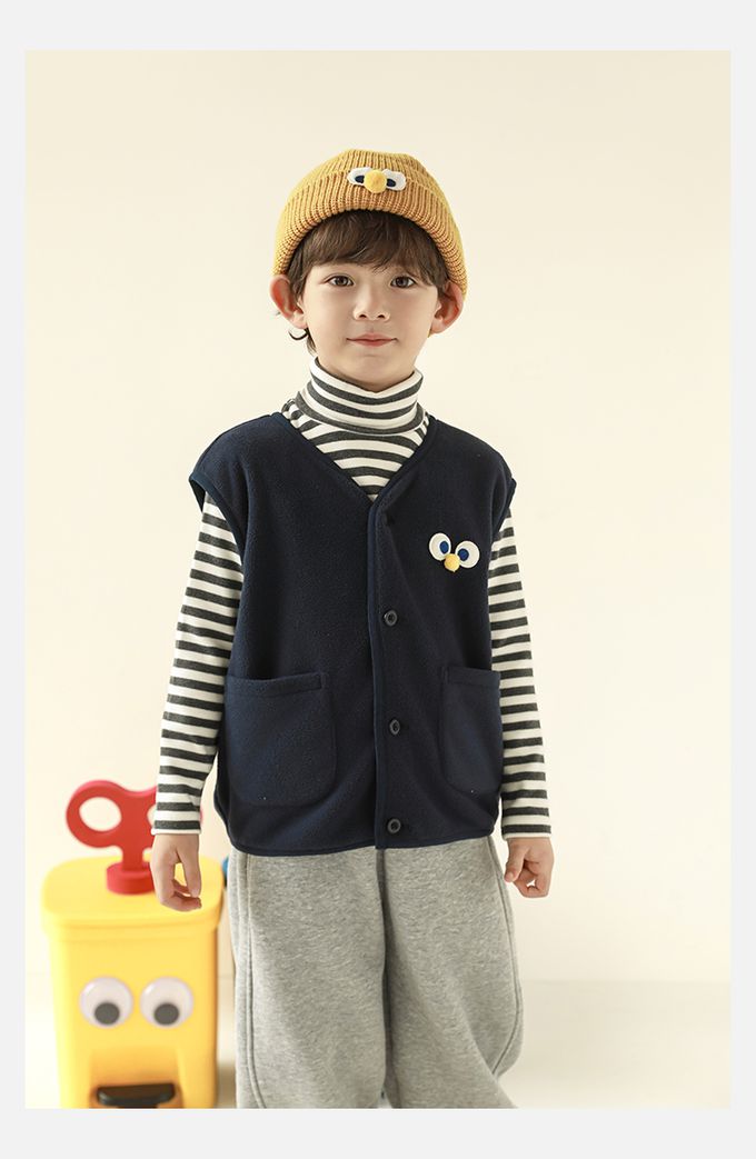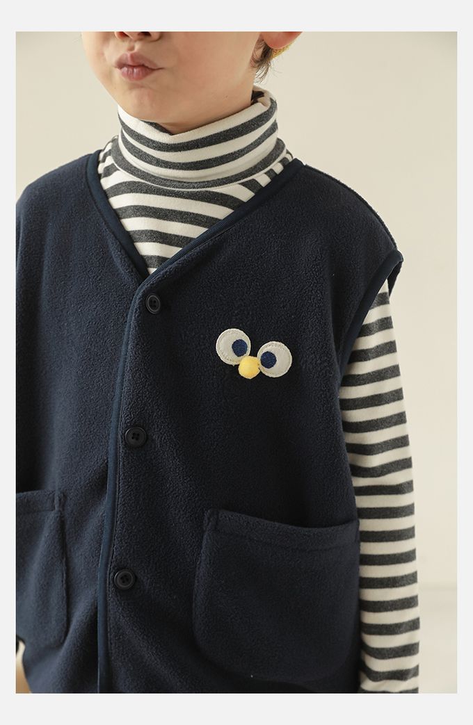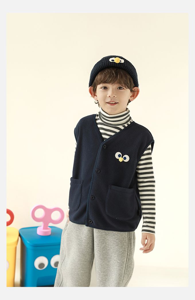 TONGMO - 內外搖粒絨保暖背心-立體小精靈-藏青色