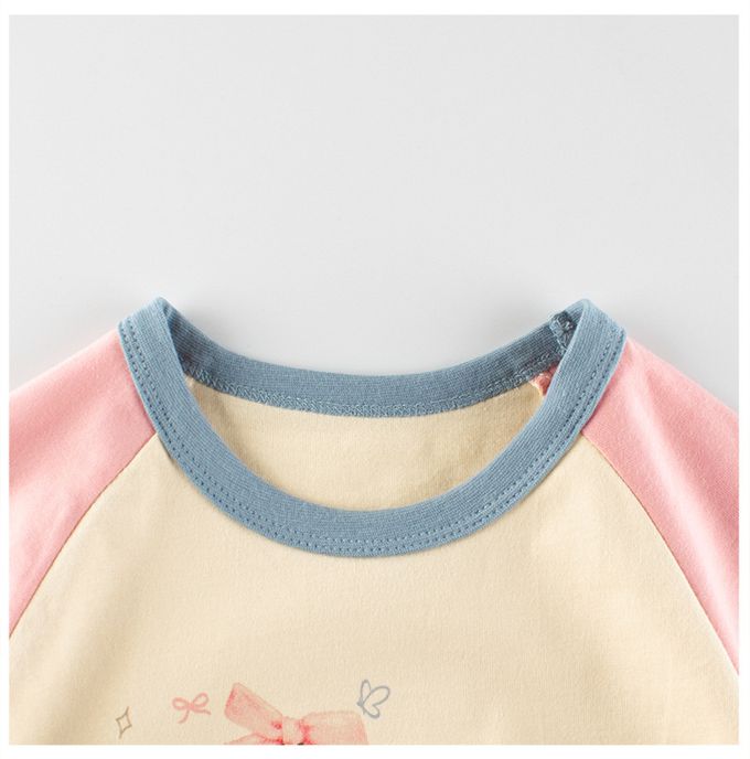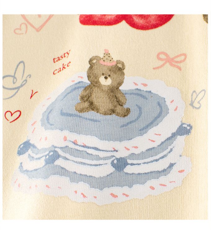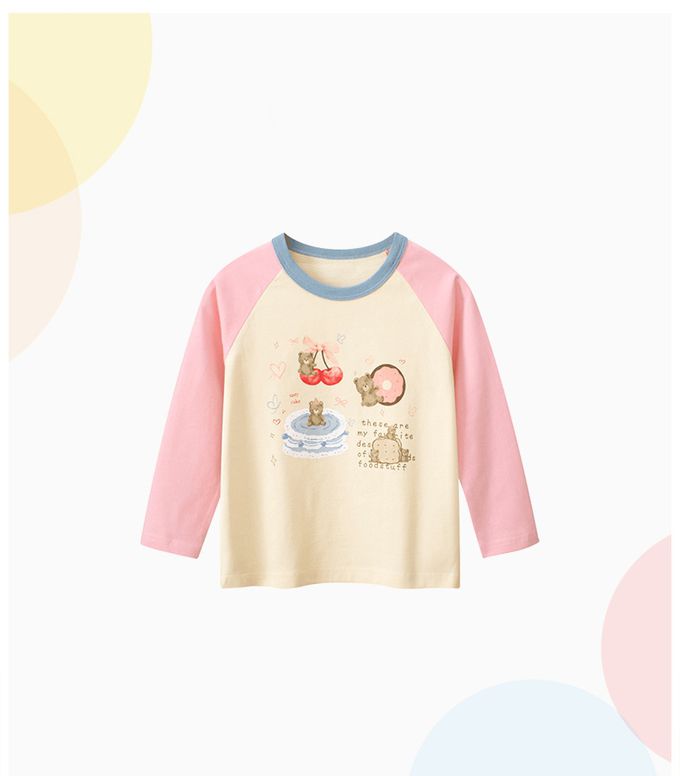 純棉長袖上衣-甜點熊熊-米杏+粉紅