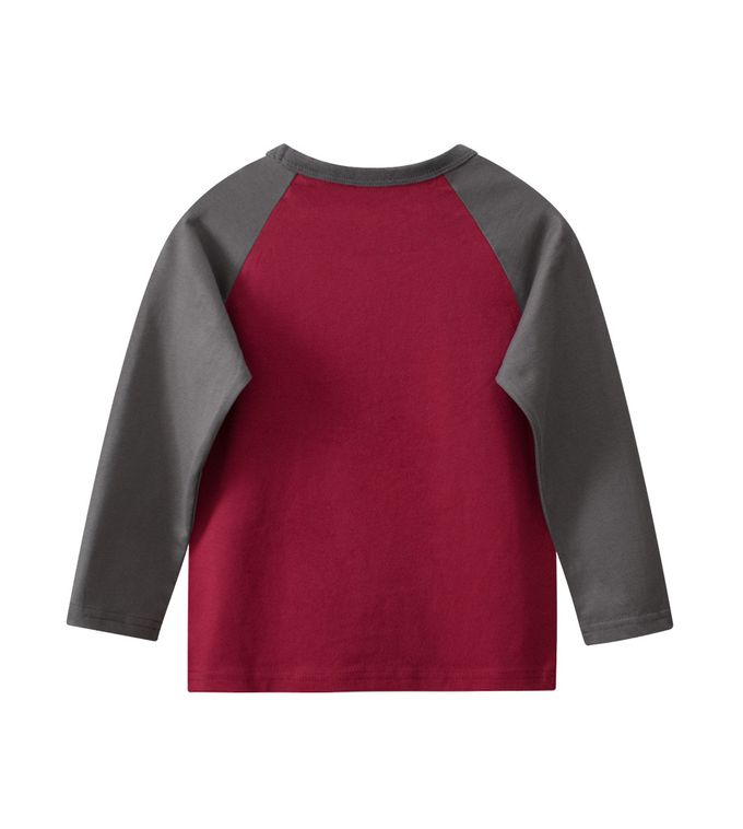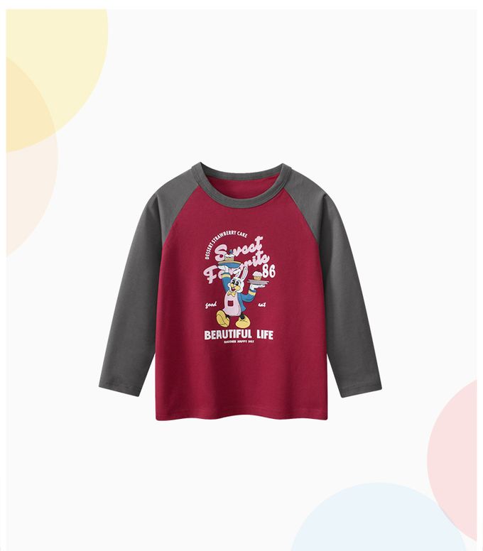純棉長袖上衣-兔子上菜-棗紅+深灰