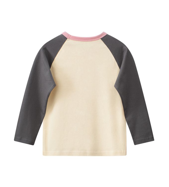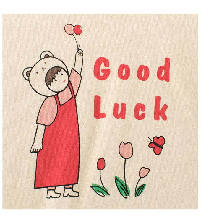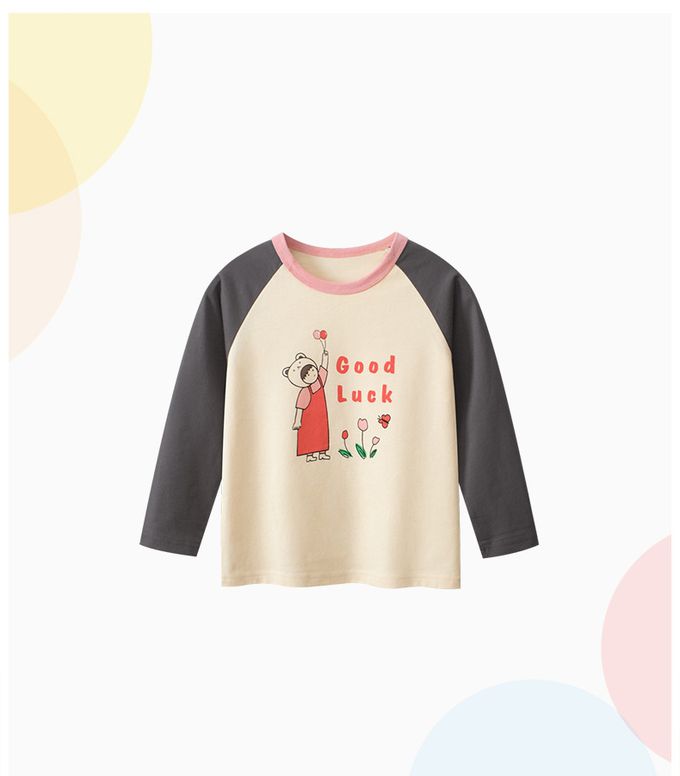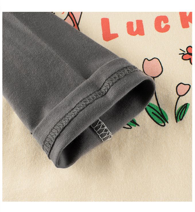 純棉長袖上衣-GOOD LUCK-米杏+深灰