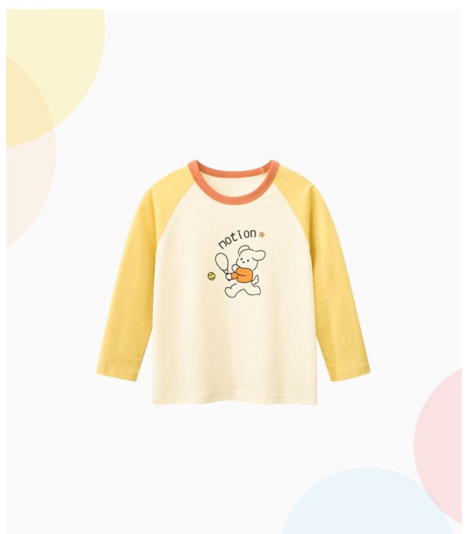 純棉長袖上衣-motion-米杏+黃