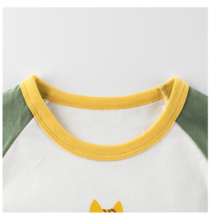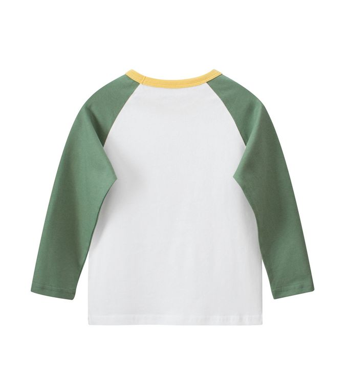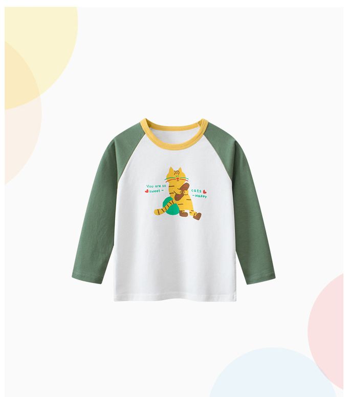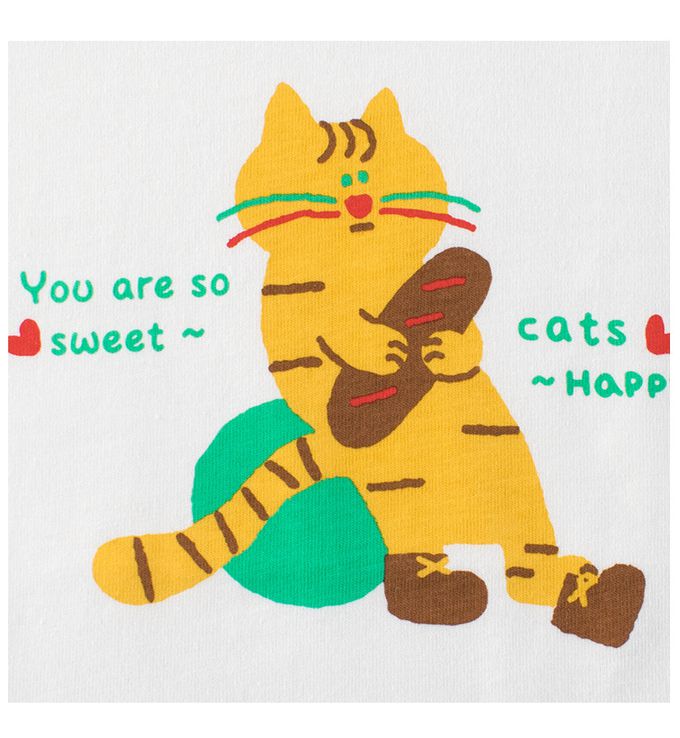 純棉長袖上衣-貓咪抱麵包-米白+綠