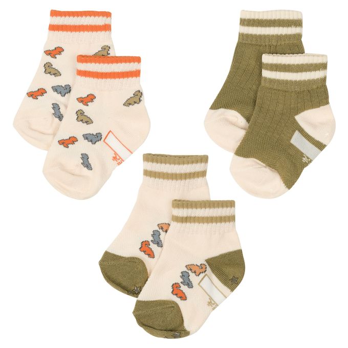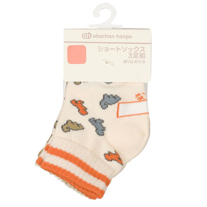 短襪3雙組-恐龍-象牙白色 (9~14cm)