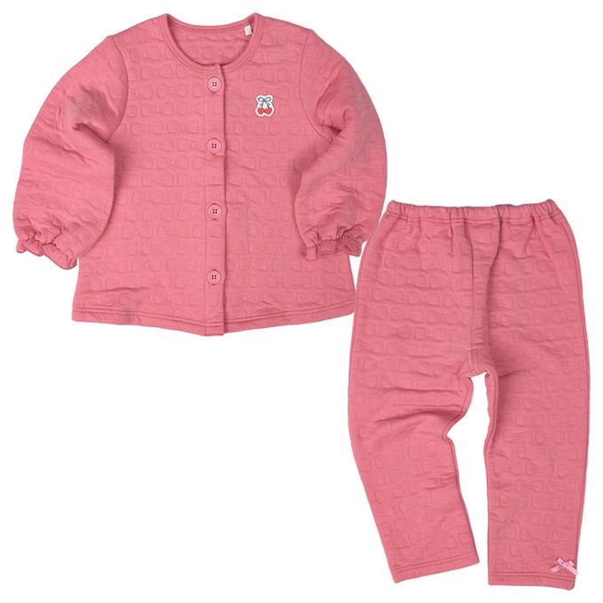 akachan honpo - 長袖鋪棉家居服前開式-愛心 櫻桃-紅色