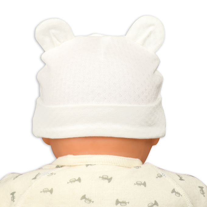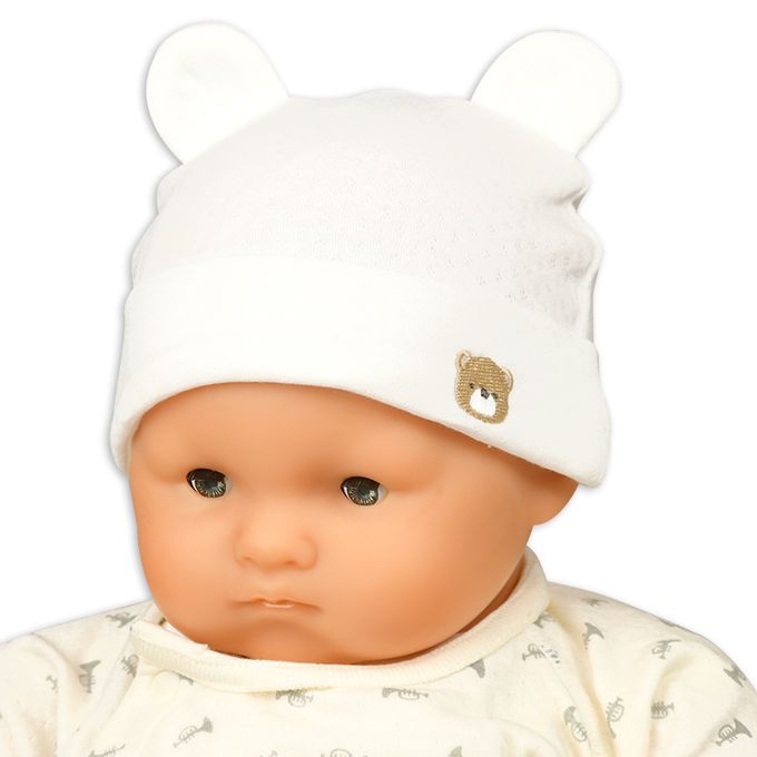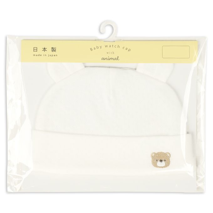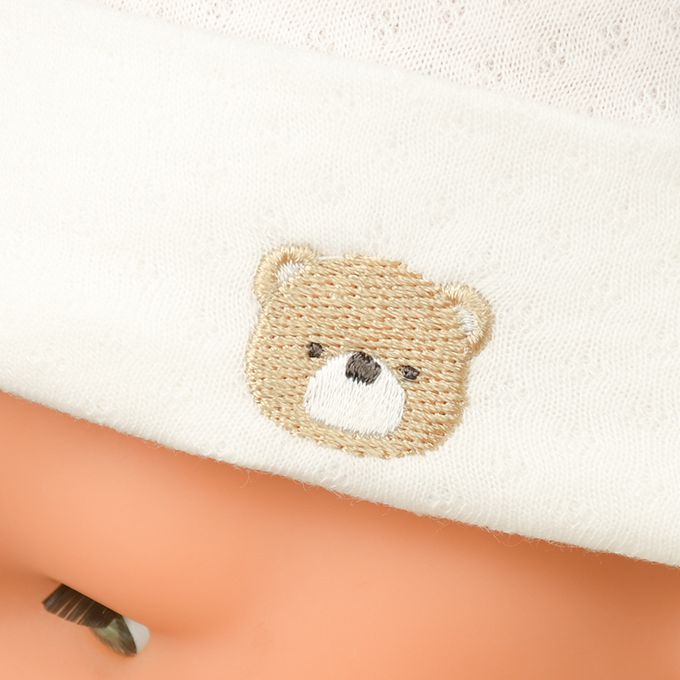 嬰幼兒小熊刺繡帽-緹花-米白色-日本製