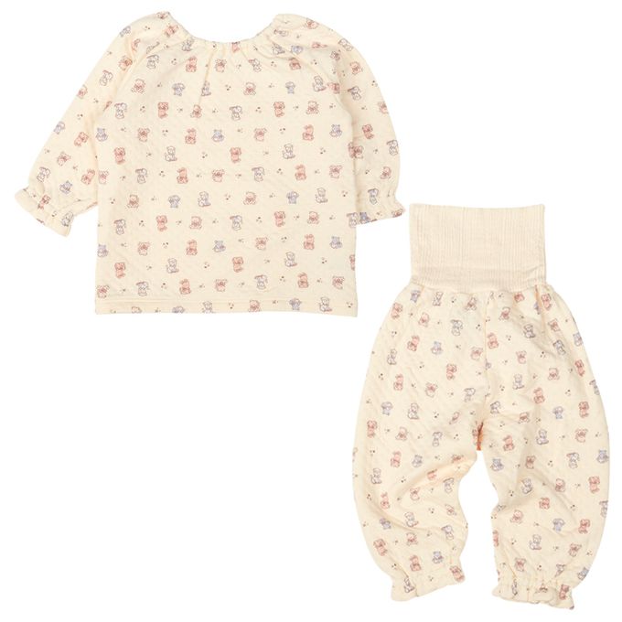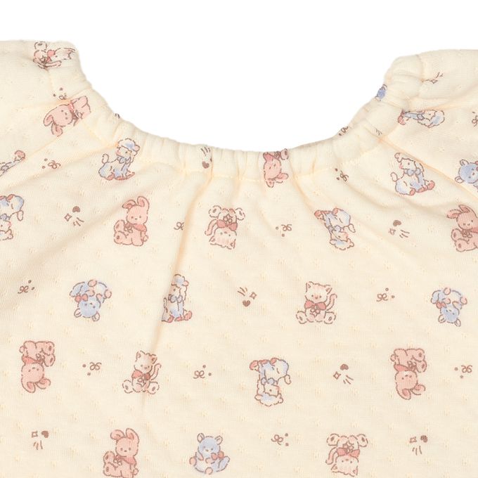 akachan honpo - 長袖家居服-穿衣練習 套頭式 動物-米白色