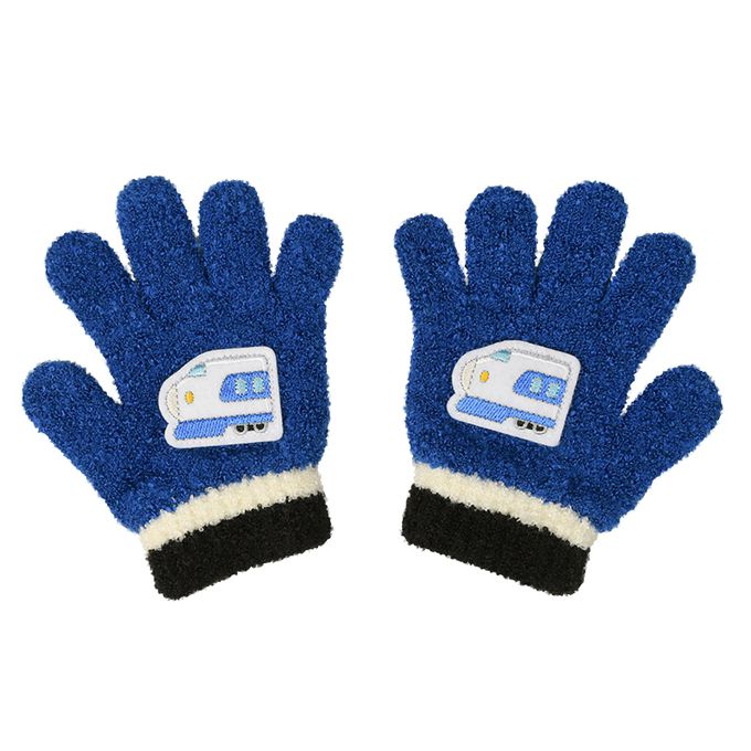 akachan honpo - 5指手套-新幹線繡片-深藍色-日本製