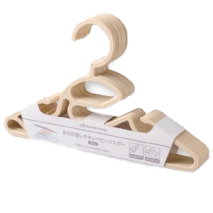akachan honpo - 易穿過領口嬰幼兒服用衣架10支組-淺卡其色