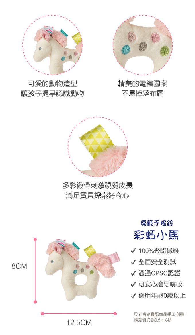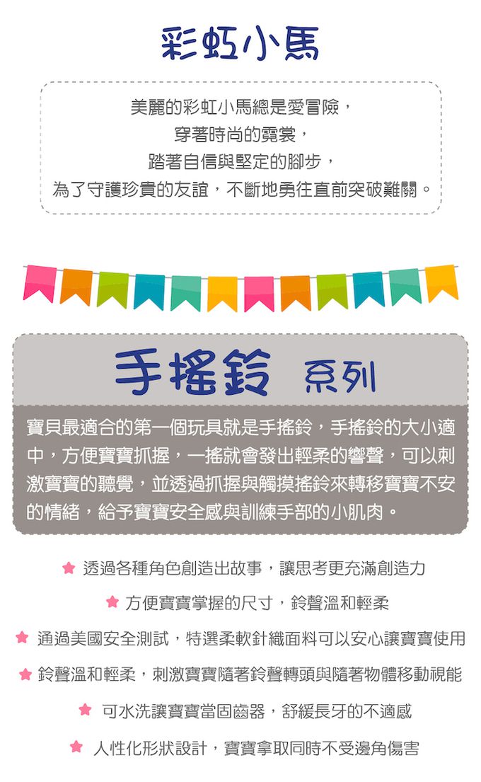 品名:獨角獸臻藏禮盒(彩虹獨角獸安撫巾+彩虹小馬手搖鈴+彩虹小馬沙沙紙)