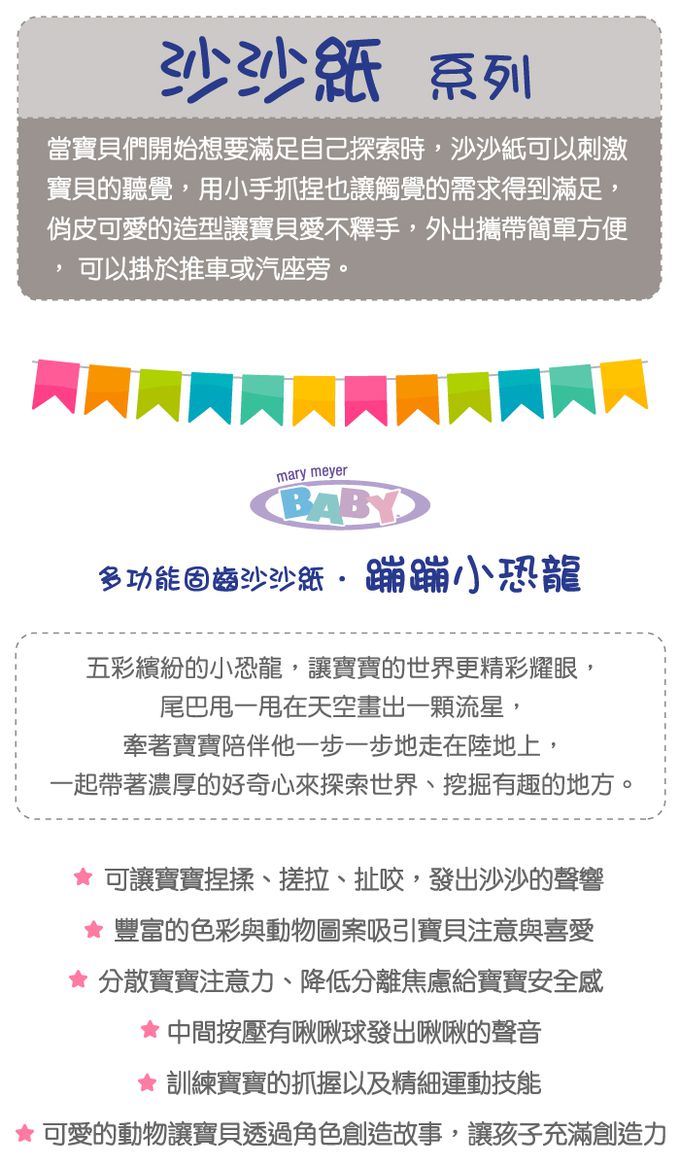 手搖鈴、沙沙紙聲響設計,可刺激寶寶聽覺
