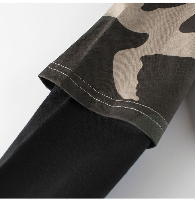 純棉長袖上衣/大學T-假兩件-迷彩綠