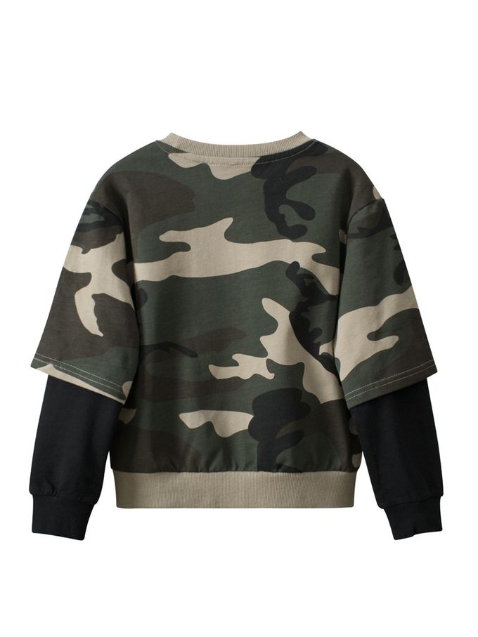 27KIDS - 純棉長袖上衣/大學T-假兩件-迷彩綠