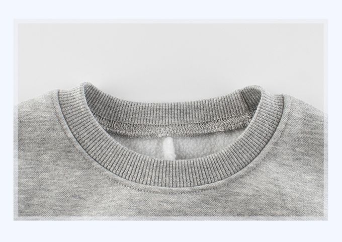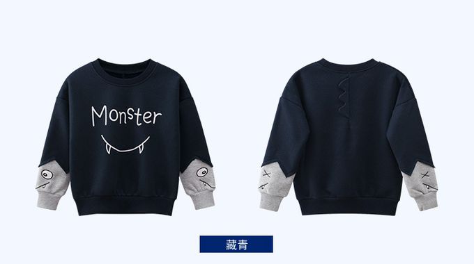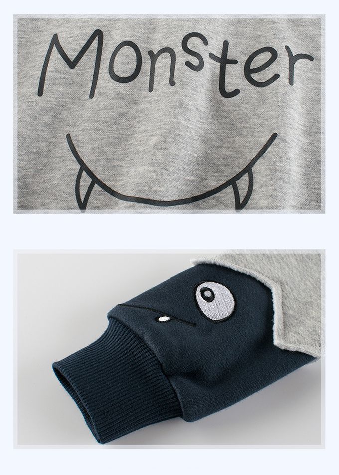 加絨棉混紡長袖上衣/大學T-立體小怪獸-灰色