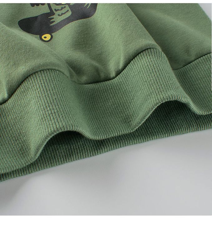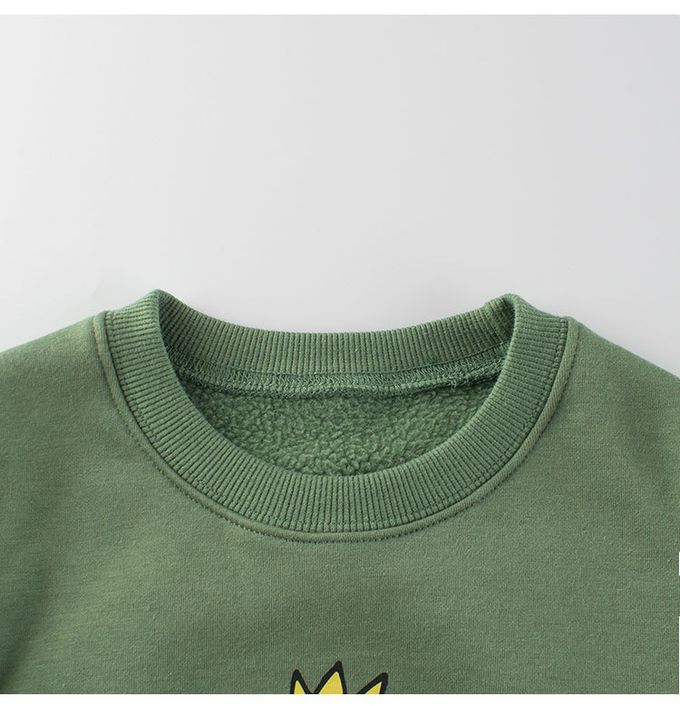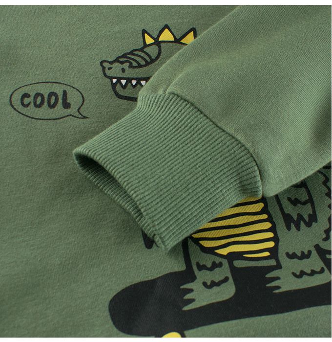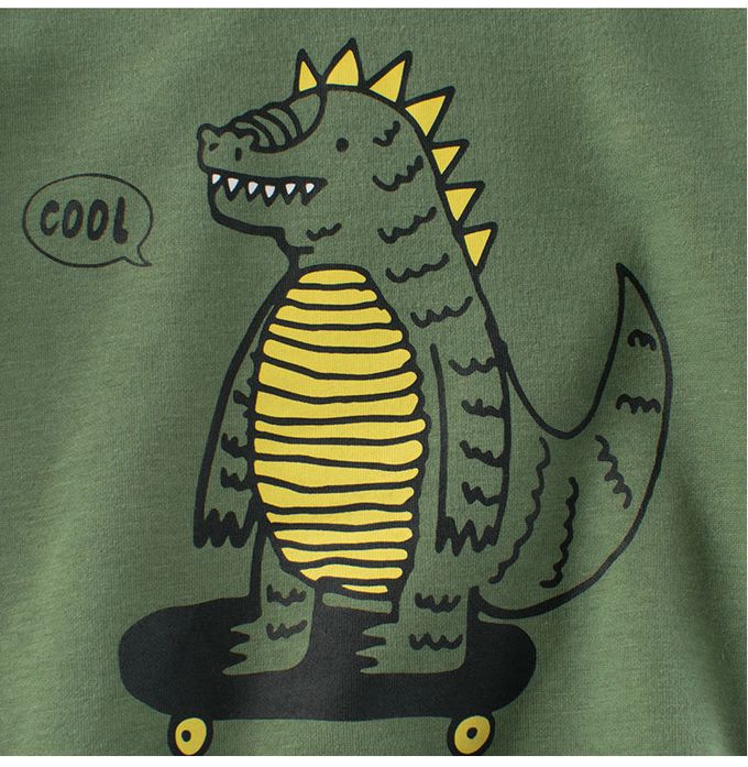 加絨棉混紡長袖上衣/大學T-COOL恐龍-綠色