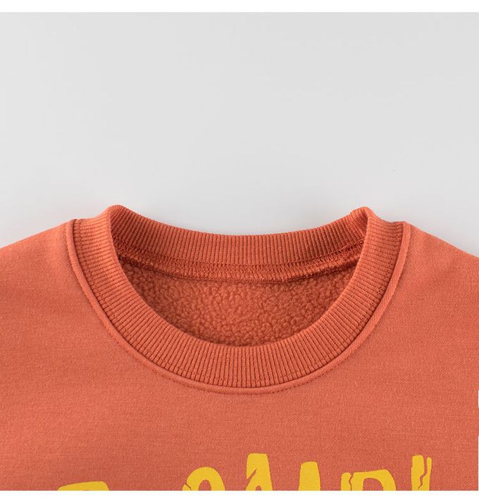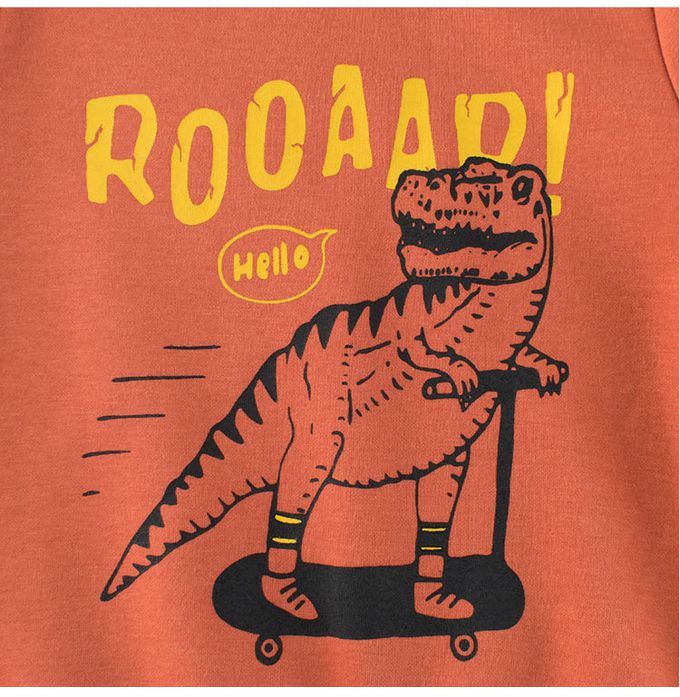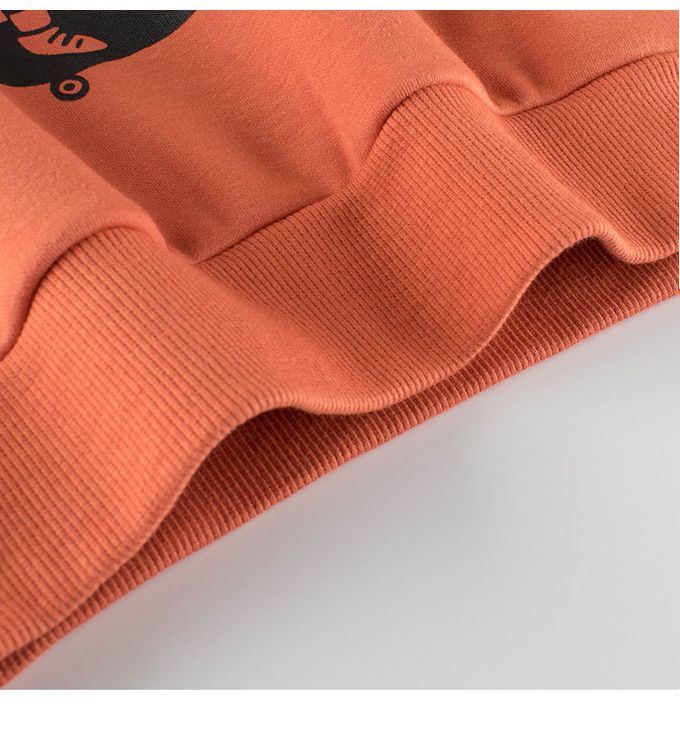 加絨棉混紡長袖上衣/大學T-哈囉恐龍-橘色