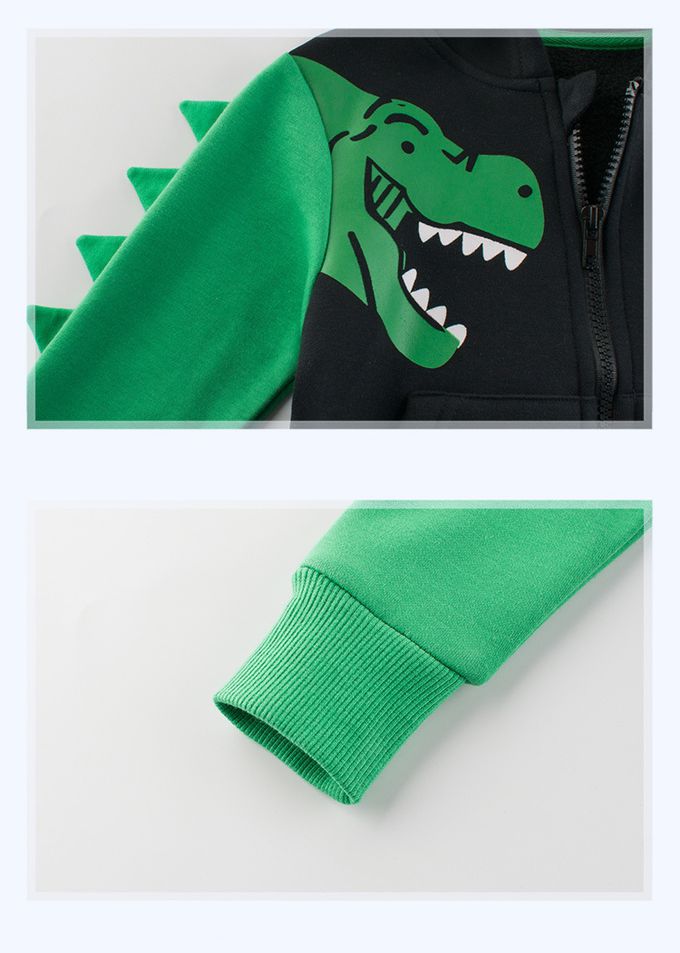 27KIDS - 立體造型加絨連帽外套-兇猛恐龍-黑色