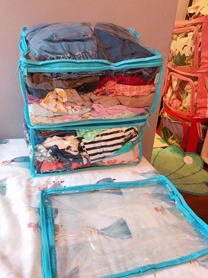 適合裝孩子衣物、玩具。放床底或堆疊平放都可以。(闊口小款無提把)