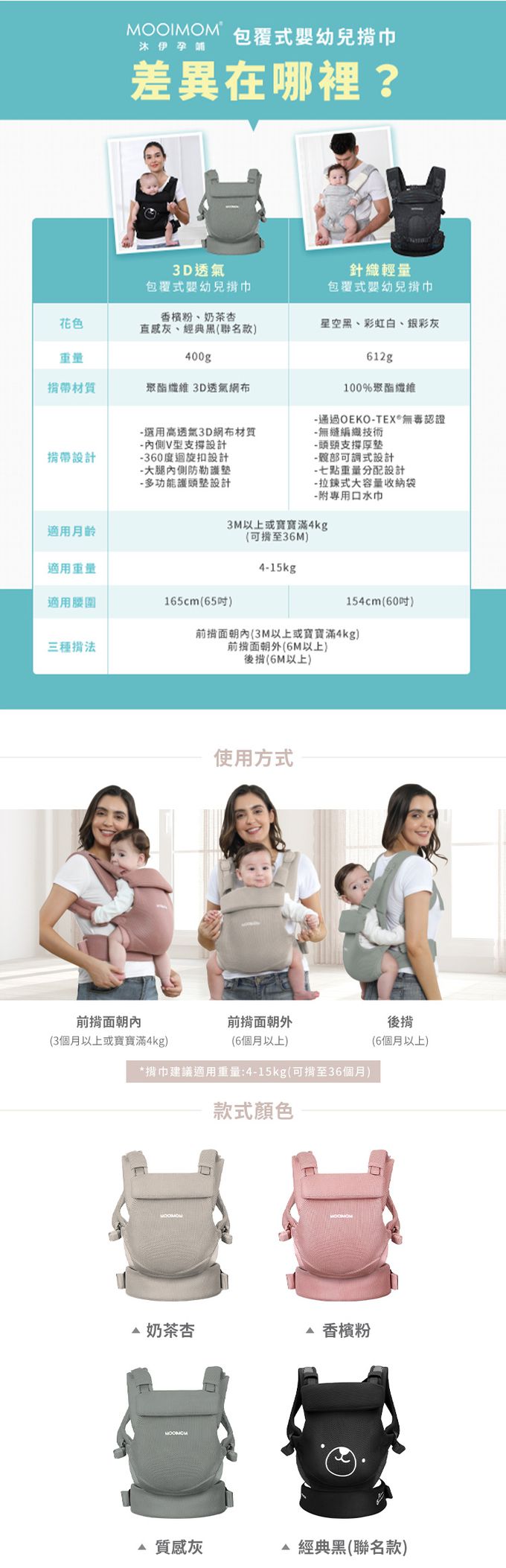 |MOOIMOM 沐伊孕哺 3D透氣包覆式嬰幼兒揹巾|