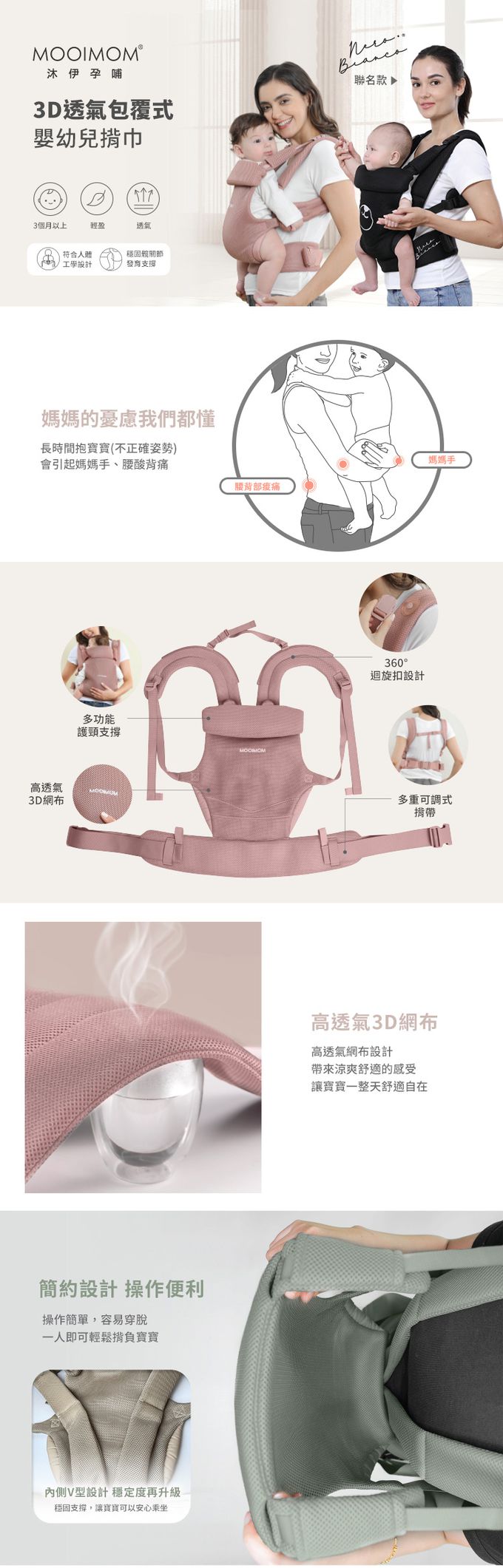|MOOIMOM 沐伊孕哺 3D透氣包覆式嬰幼兒揹巾|