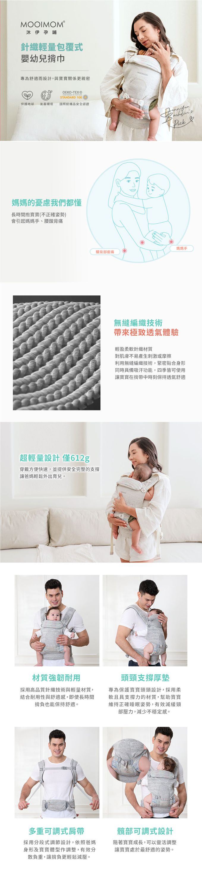 |MOOIMOM 沐伊孕哺 針織輕量包覆式嬰幼兒揹巾|