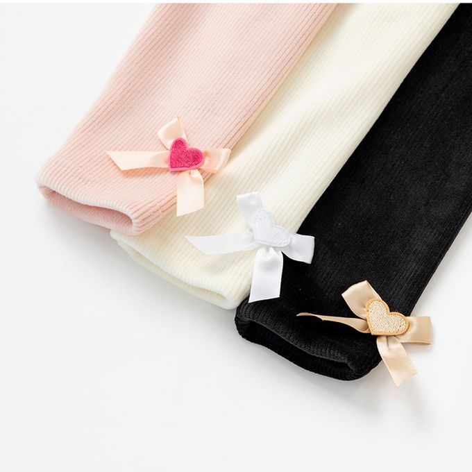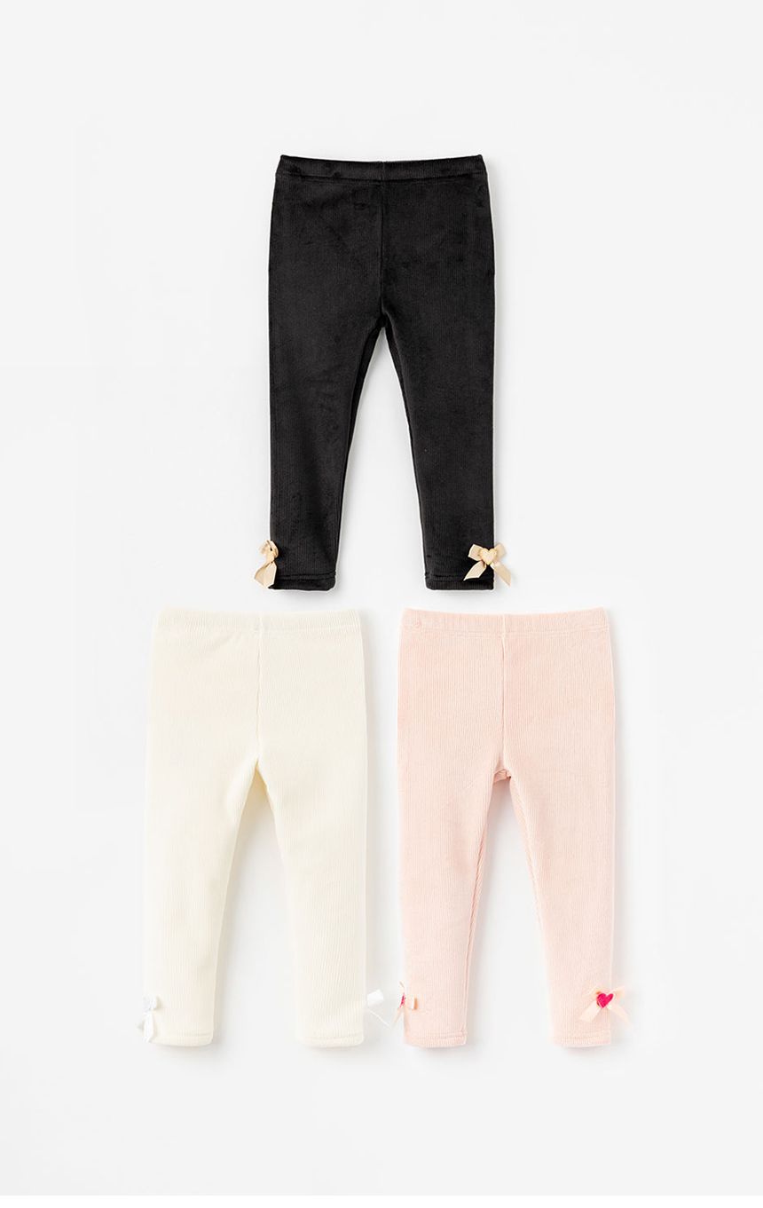 韓國 OZKIZ - 鬆緊腰內磨毛燈芯絨彈力內搭褲-愛心蝴蝶結-淡粉