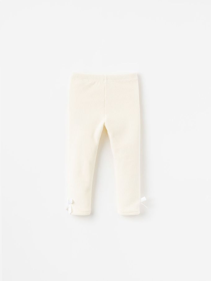 韓國 OZKIZ - 鬆緊腰內磨毛燈芯絨內搭褲裙-愛心蝴蝶結-象牙白