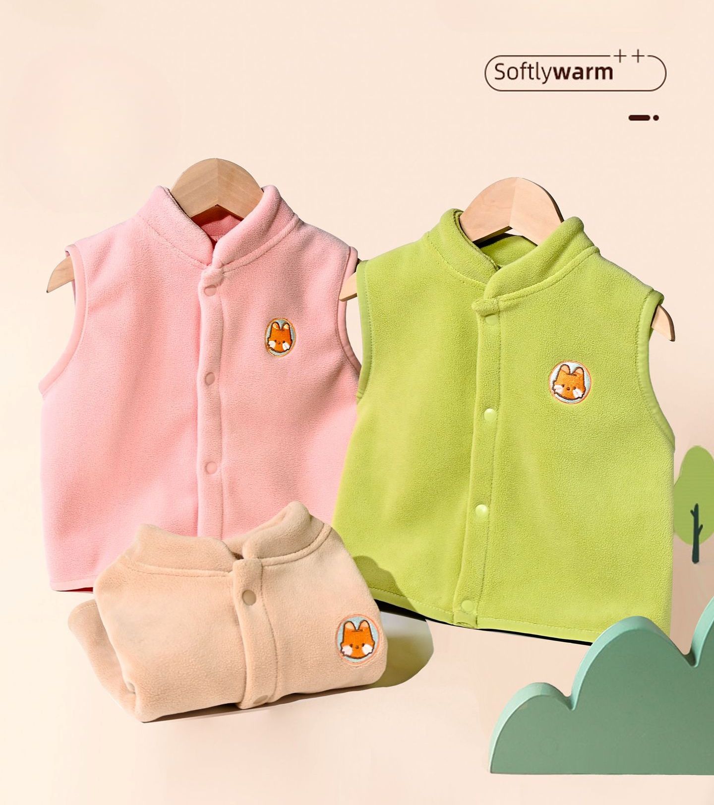 Fleece搖粒絨兒童背心(加絨)-雙層加厚-粉色
